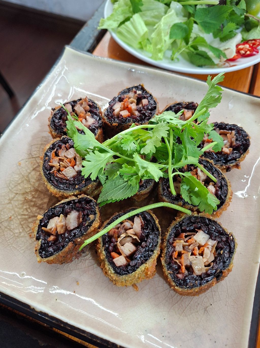 The nuggets was just beef veganized not nuggets. I asked for no cilantro but instead got only cilantro as herbs haha