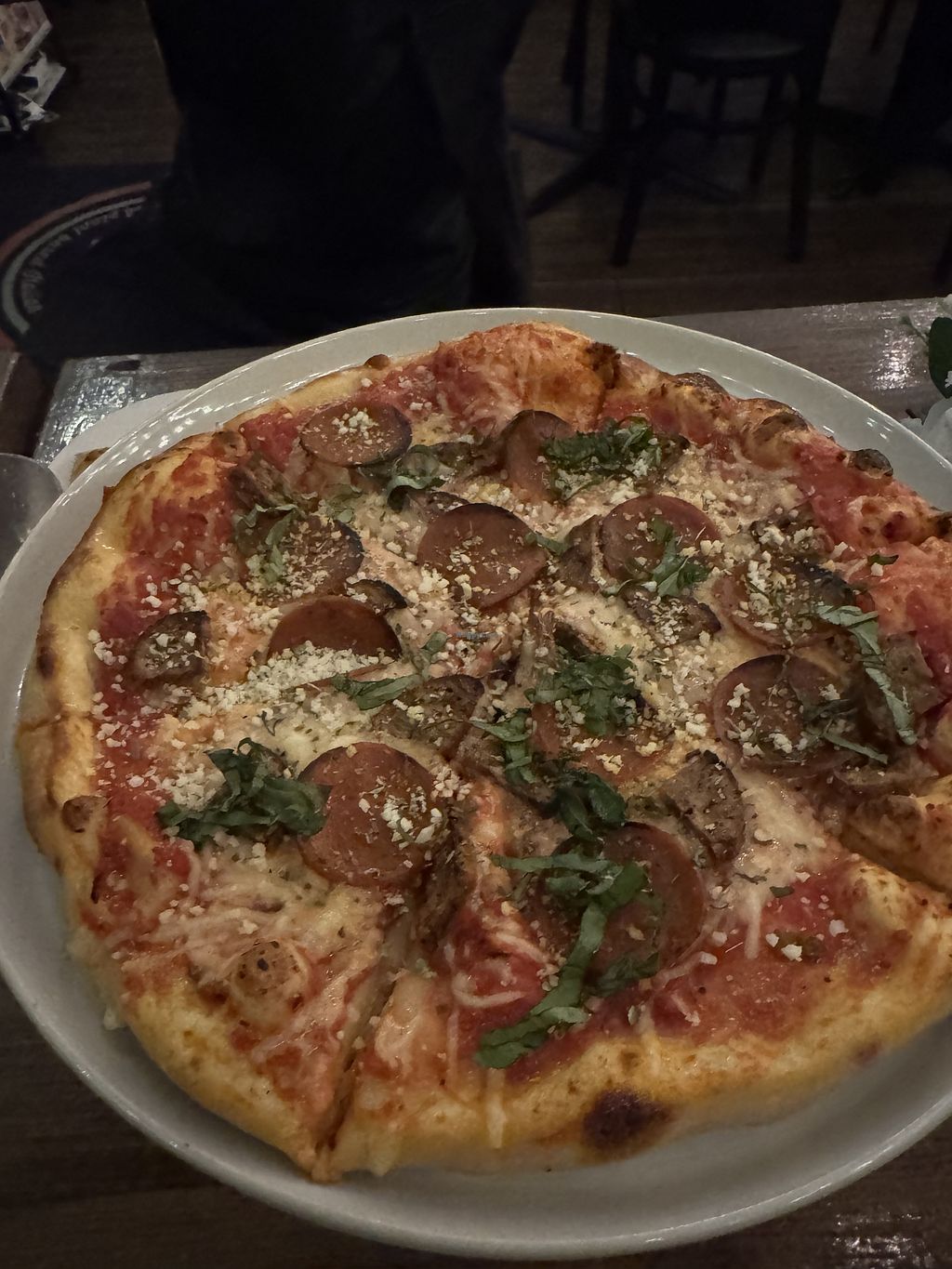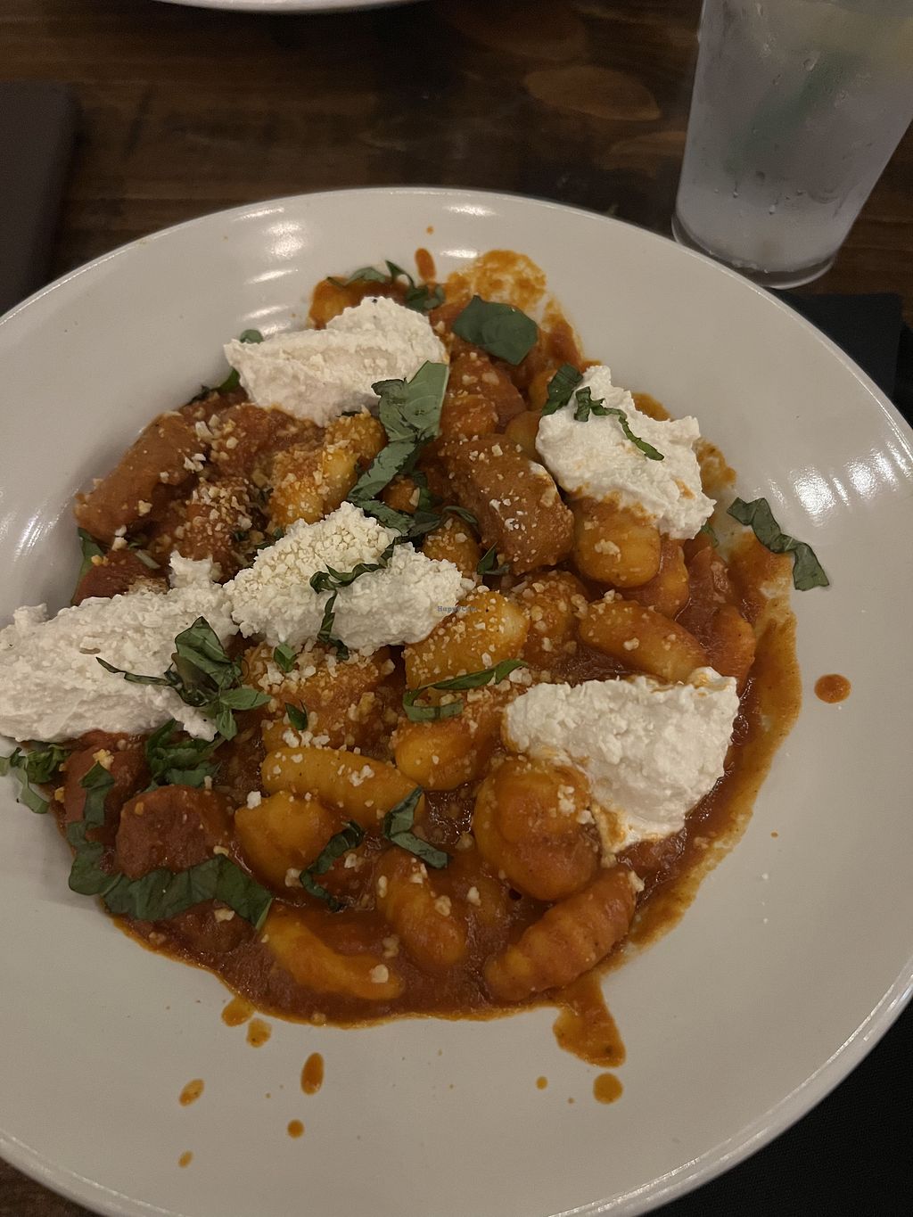 The spinach and artichoke dip is to die for!!! So creamy and drool worthy. I also had the zucchini sticks and the eggplant Parm, which is a hefty size! The dim/cozy atmosphere would be an amazing date night!