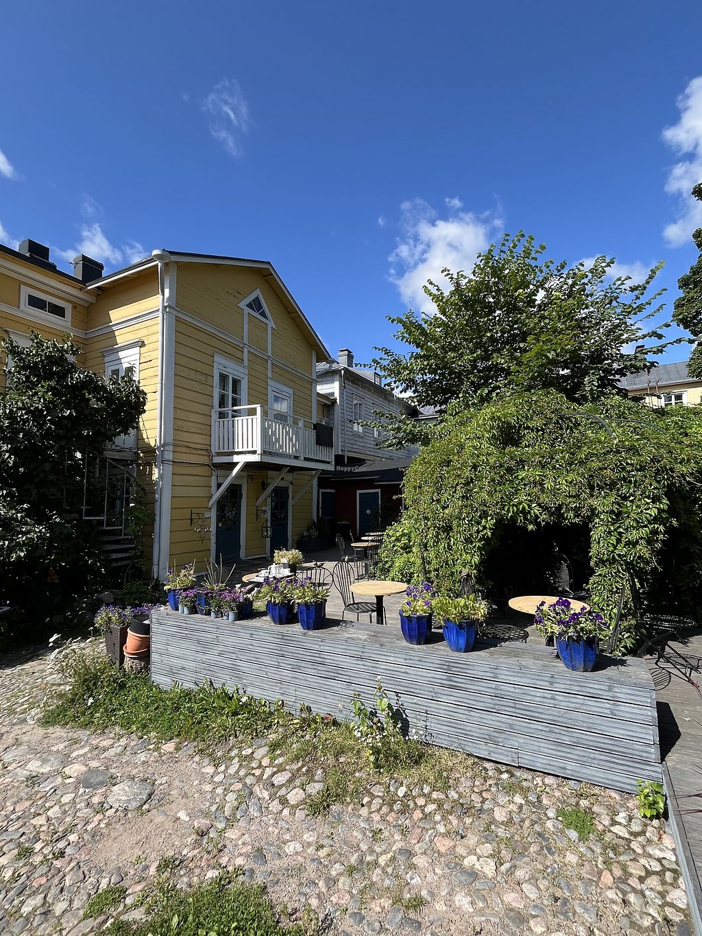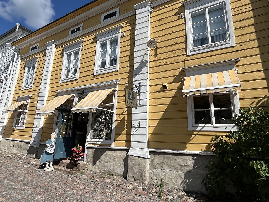 Kävin Porvoon reissullani ystävän kanssa Kahvi- ja teehuone Helmissä. Paikka oli vanhanaikaisesti sisustettu söpö kahvila. Takapihan terassi ja piha-alue oli viihtyisä. Paikalla oli paljon pikkulintuja, mikä minusta oli mukavaa (mutta osa asiakkaista hätisteli niitä pois). Kauramaitoa on saatavilla kahviin ja tarjolla oli muutama vegaaninen leivos. Itse otin jonkin suklaisen leivonnaisen kahvin lisäksi.