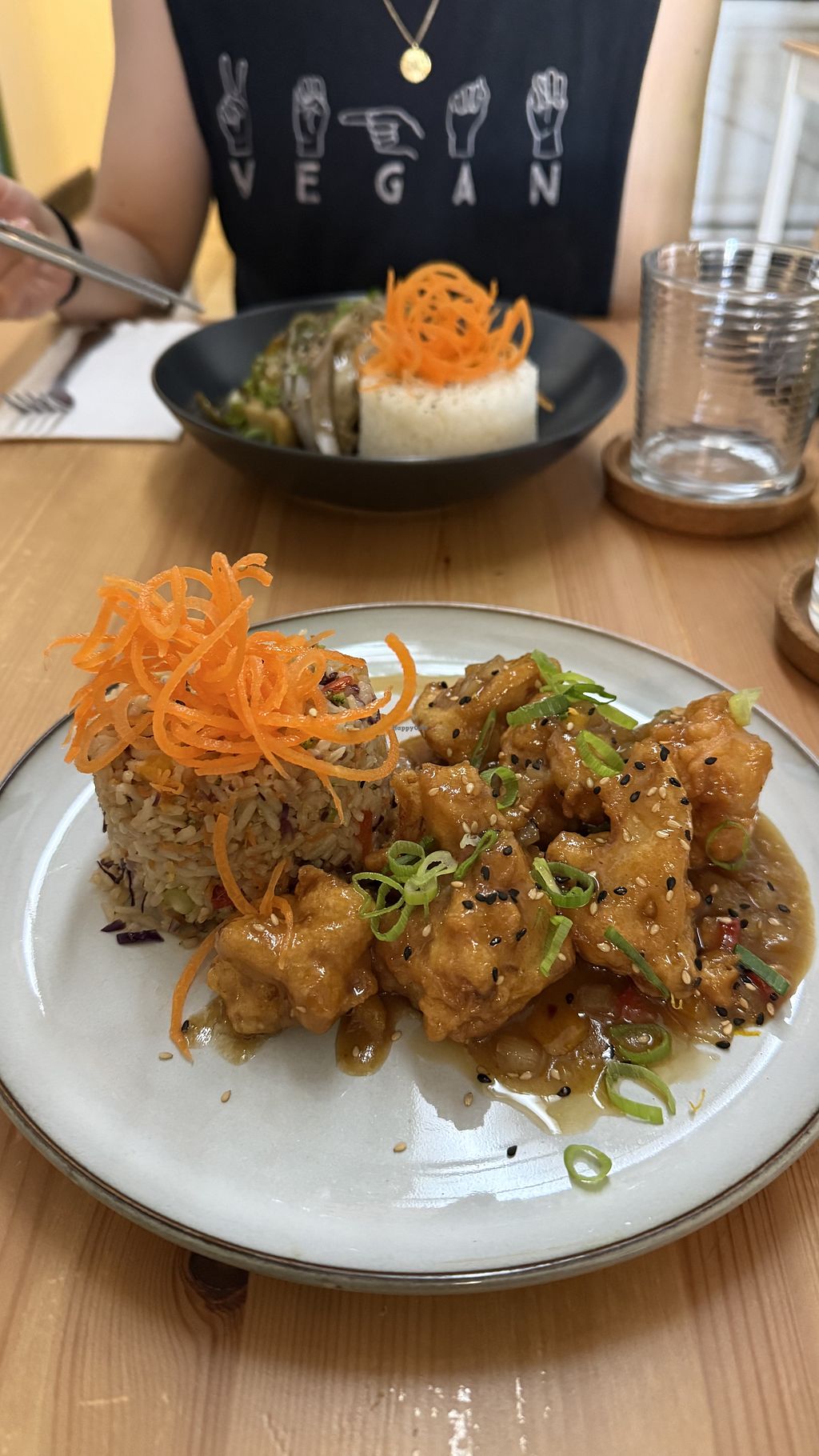 I can’t say it more plainly eat here you will be happy. We ordered the shroom roll, for the appetizer. Amazing fresh taste then the creamy vegan cream cheese kicks in 😻. I got the Lomeiny and my partner got the sweet and spicy tofu. Amazing taste and filling portions.
