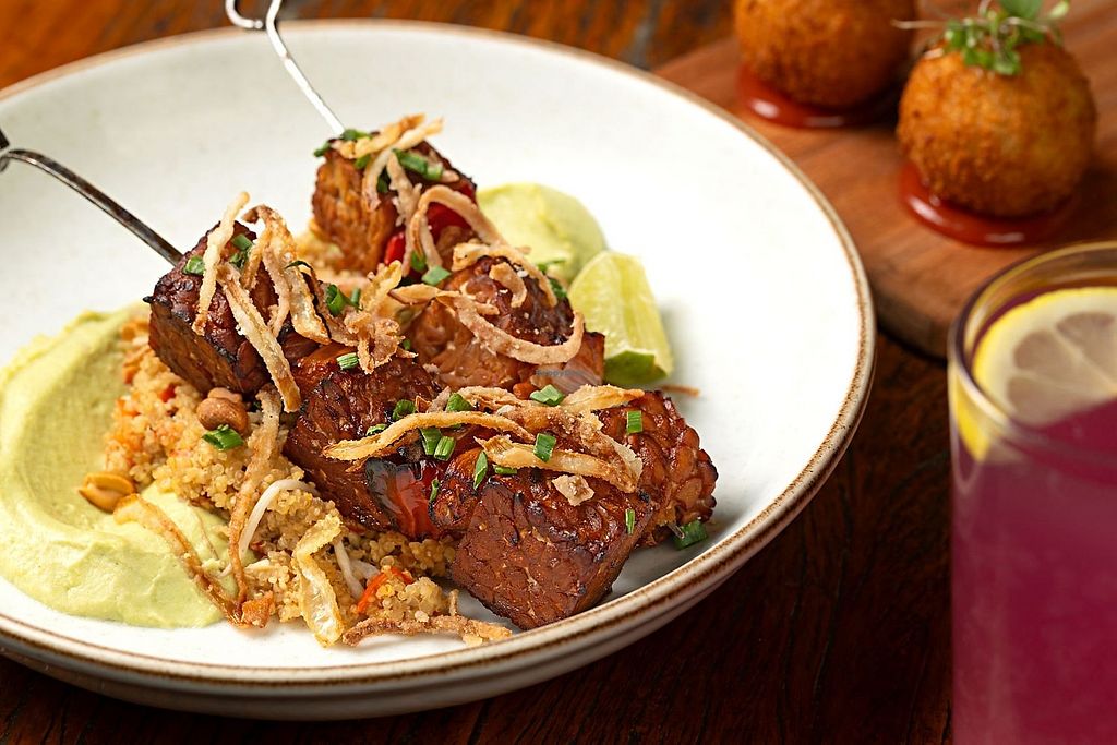 Modern and upscale plant-based restaurant and bar est. 2016. Uses seasonal ingredients and offers dishes like bolinho, burger served with potato wedges, mushroom steaks, spiced tofu entree, day's soups. Dessert may include options like toffee pudding, toffee cake or chocolate brownie topped with coconut ice cream. Open Mon-Sun 8:00am-11:00pm.