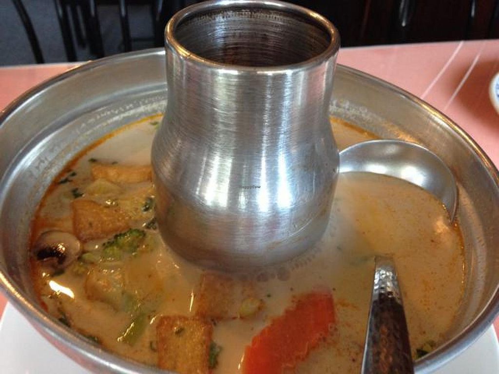 Serves meat, vegan options available. Thai food restaurant, does not label veg items; however, will cook to veg/vegan upon request. Ask to use tofu in place of meat. Open Tue-Fri 11:00am-9:30pm, Sat 12:00pm-9:30pm, Sun 12:00pm-8:30pm.
