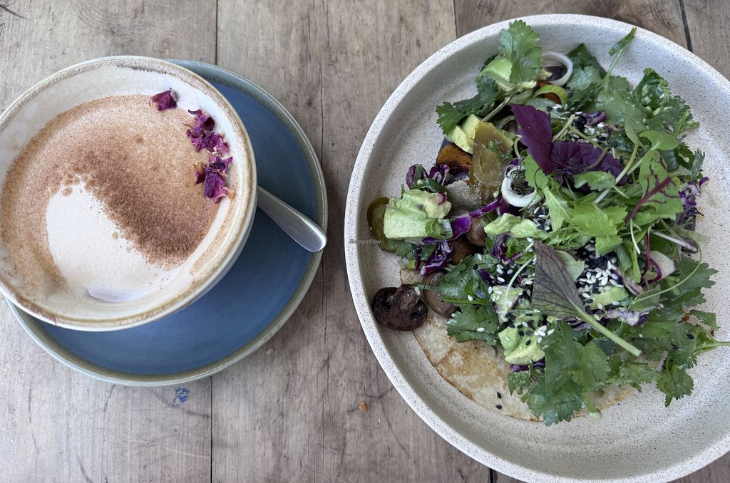 Serves meat, vegan options available. Cafe offering coffee and healthier food, with marked vegan items and emphasis on gluten-free and dairy-free. Vegan include avocado with coconut feta on toast, a veggie lasagne, and nasi goreng with cauliflower rice. Open Mon-Sun 8:00am-3:00pm.