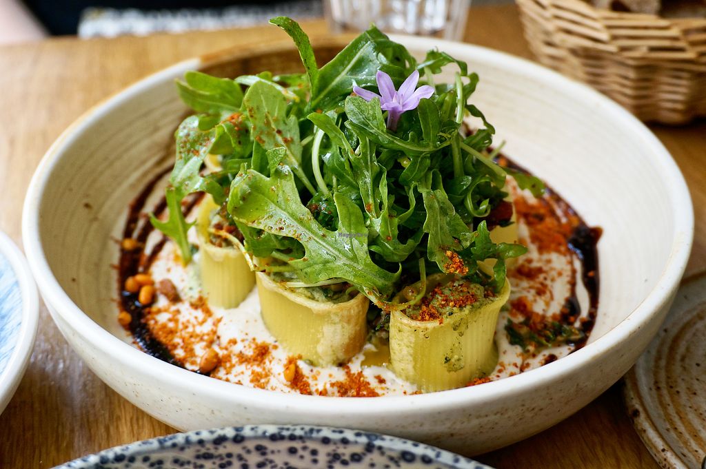 l'entrée : une feuille de sucrine avec du chou rouge et un yaourt mais…