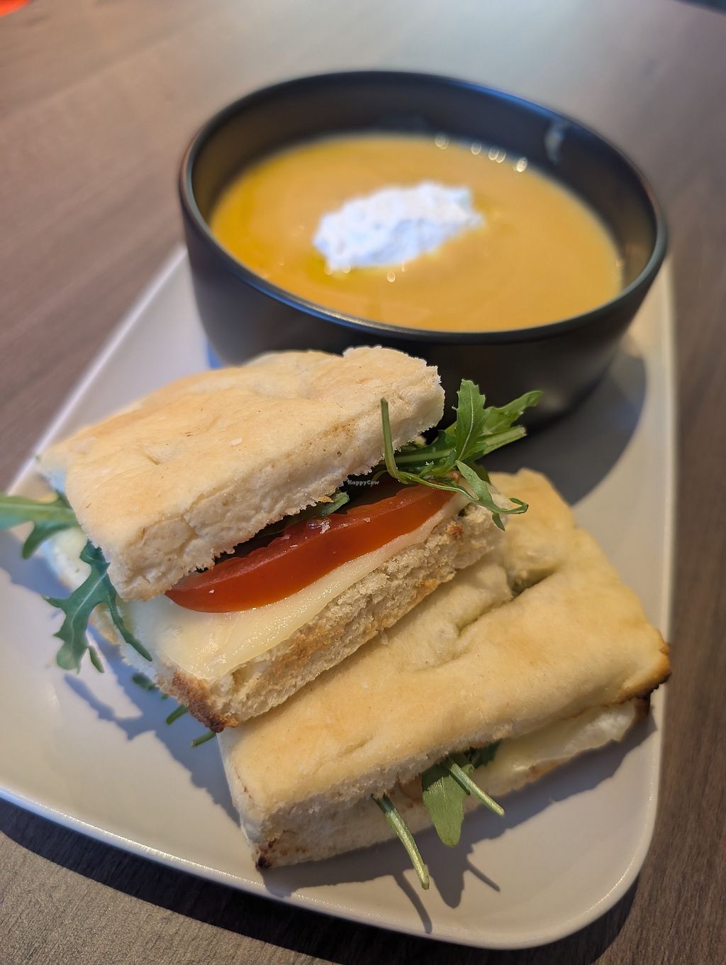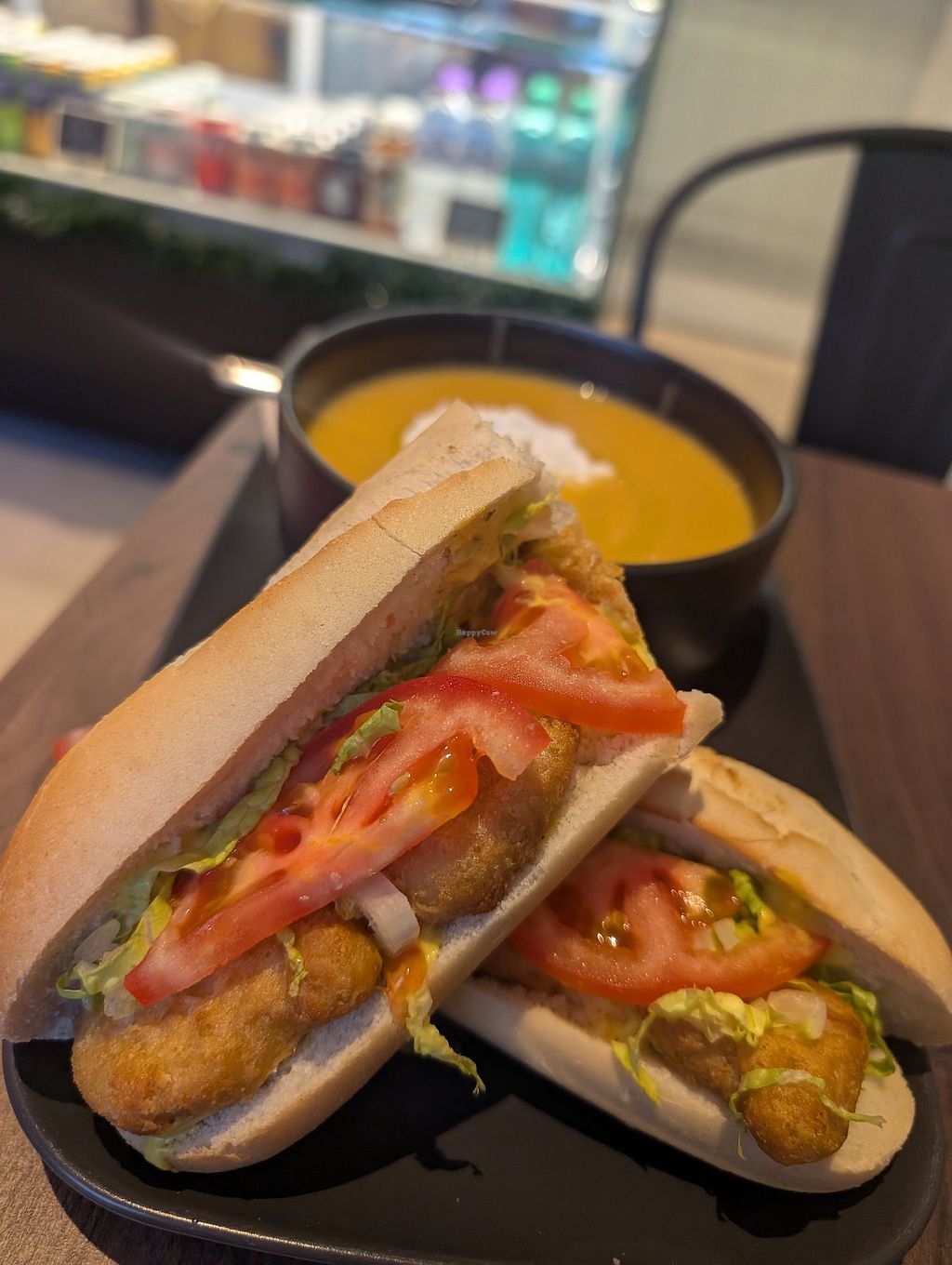 8 or so choices of sandwiches. All but one were vegan. Soup and sandwich for £10.40 - felt a little expensive but was tasty.