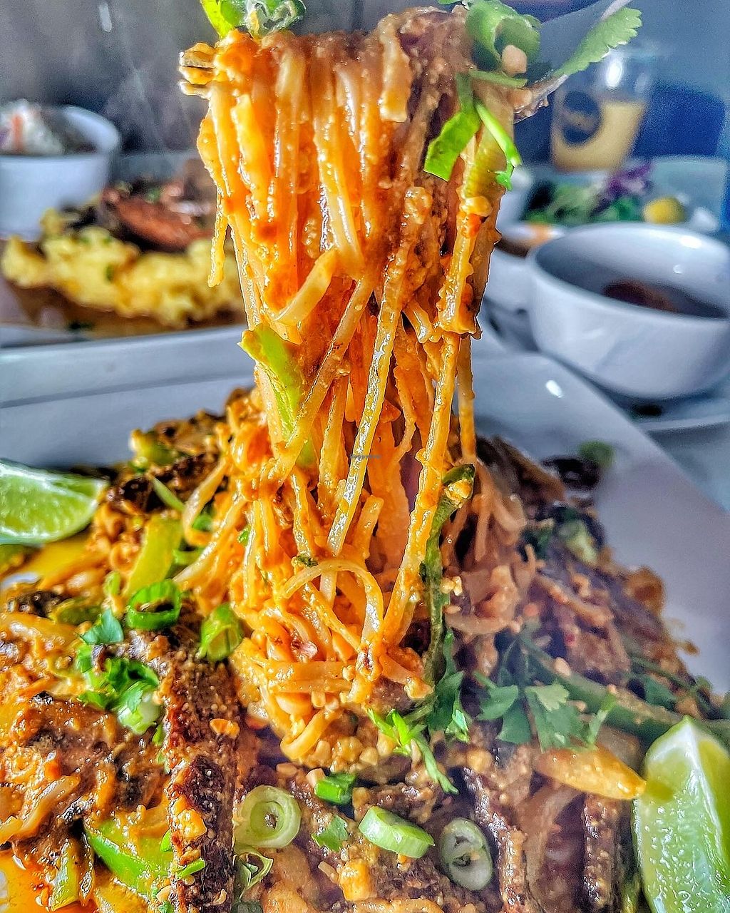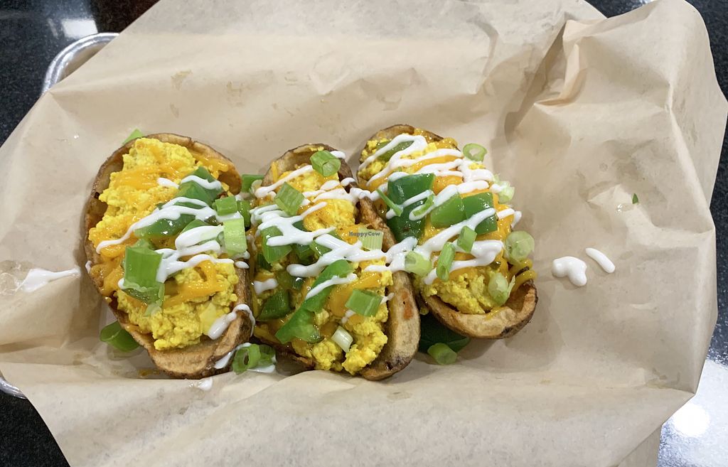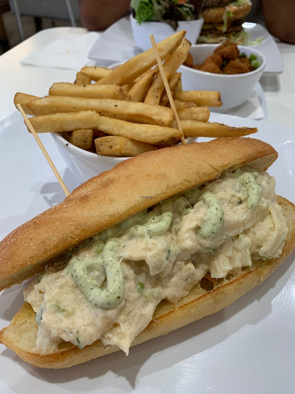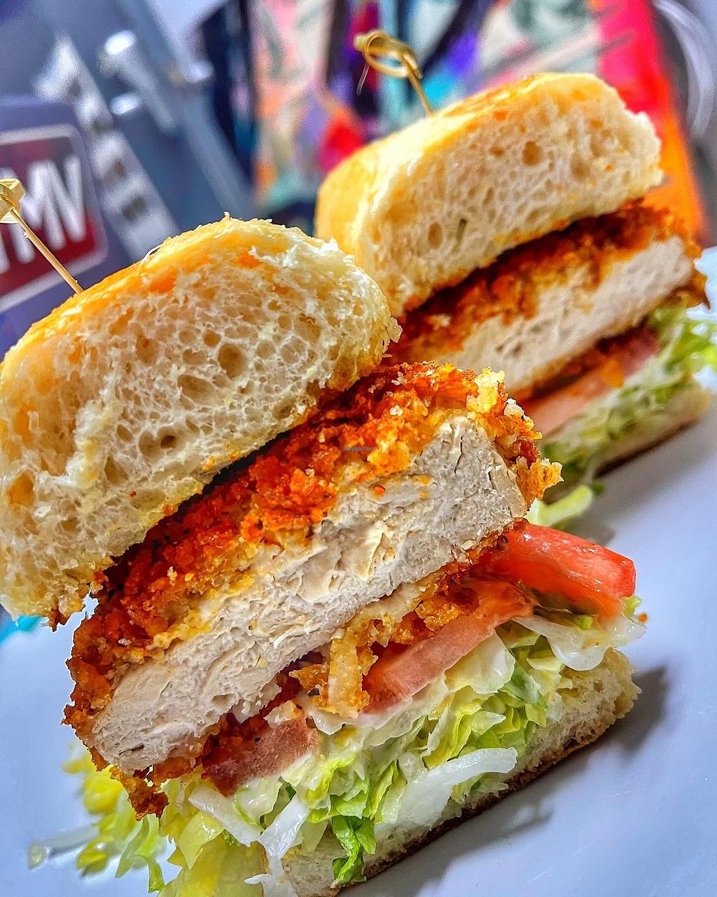 Chicken & waffles served over mashed potatoes. The size of a birthday …