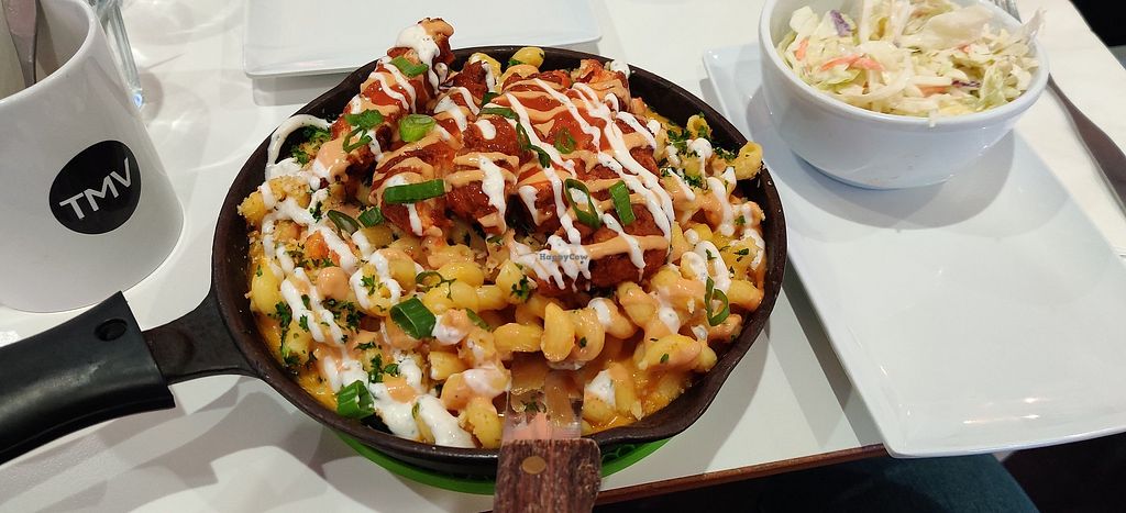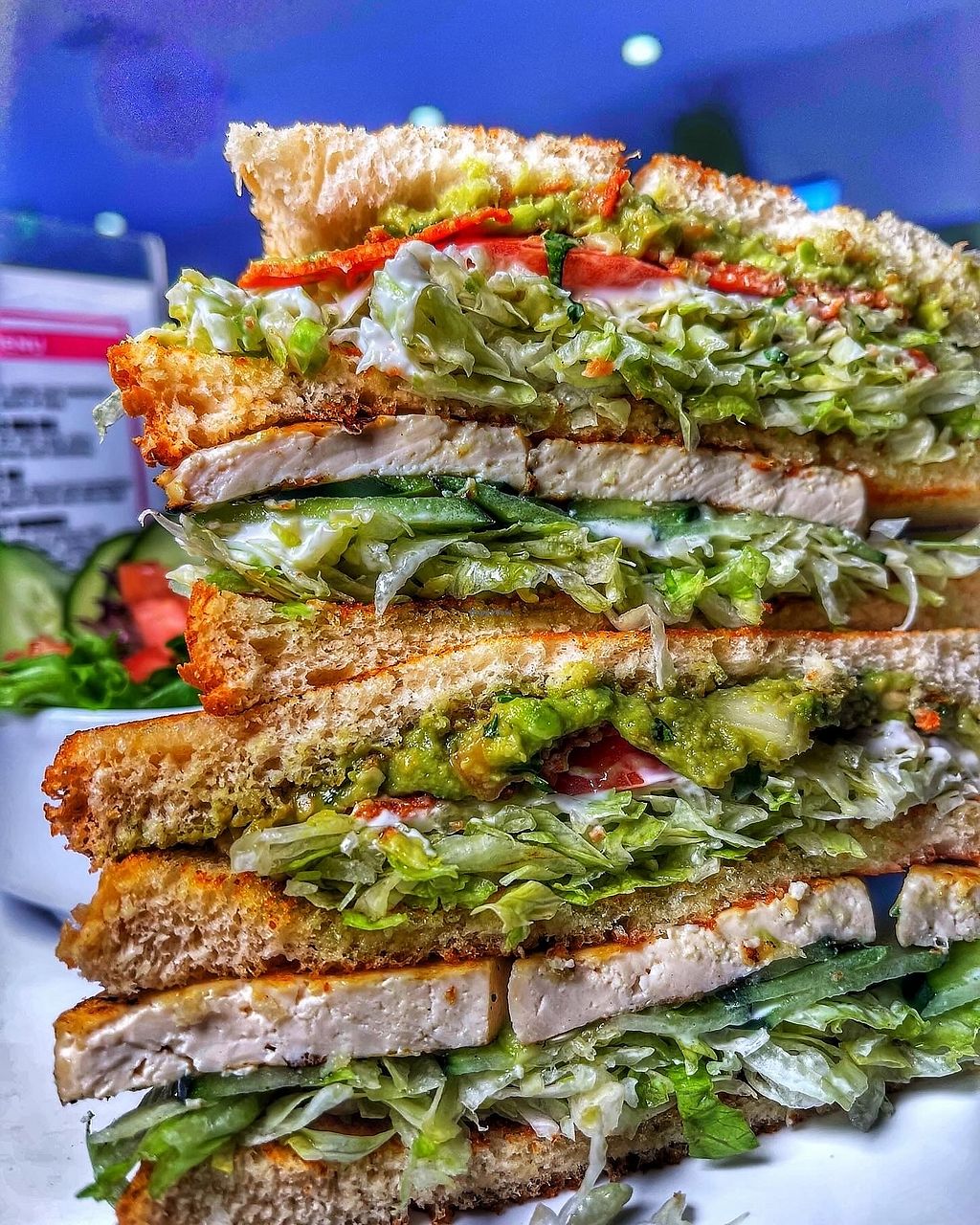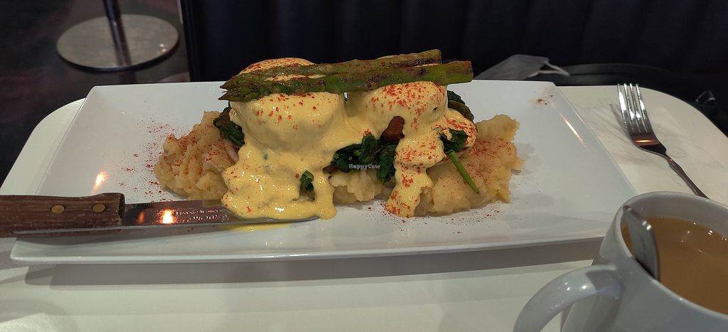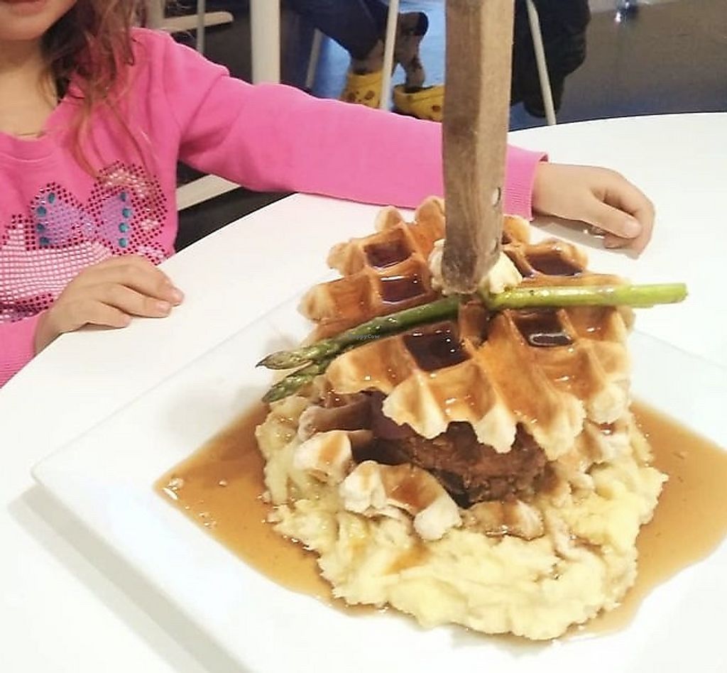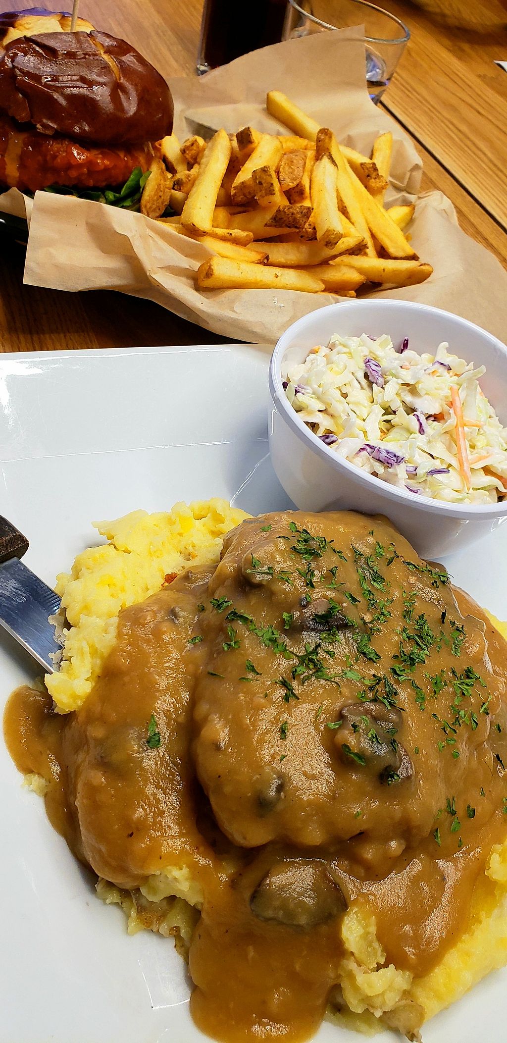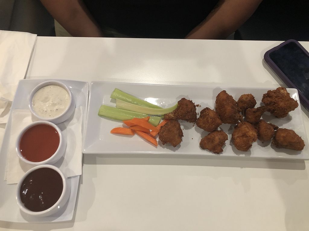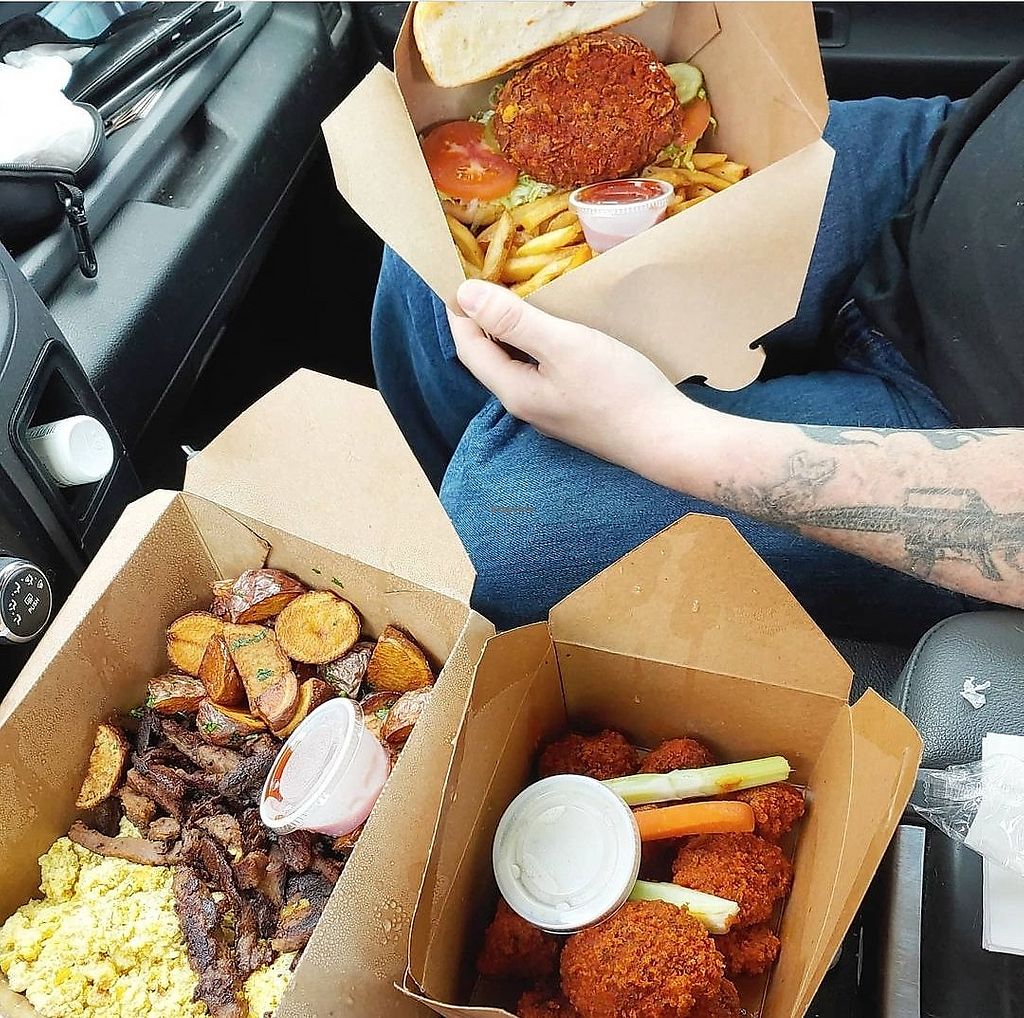 Steak and eggs, cauliflower buffalo wings, and spicy chik'n sandwich