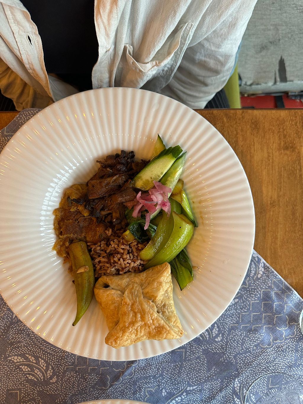 WOW! What an unexpected surprise. Everything was so delicious, even my non-veg partner raved about how good the food was. We had the first Friday main and a roti side. I have no idea what their names were but I’ve attached some photos. The flavors and spices were just top notch. Excellent food overall. Don’t miss this place! 💚