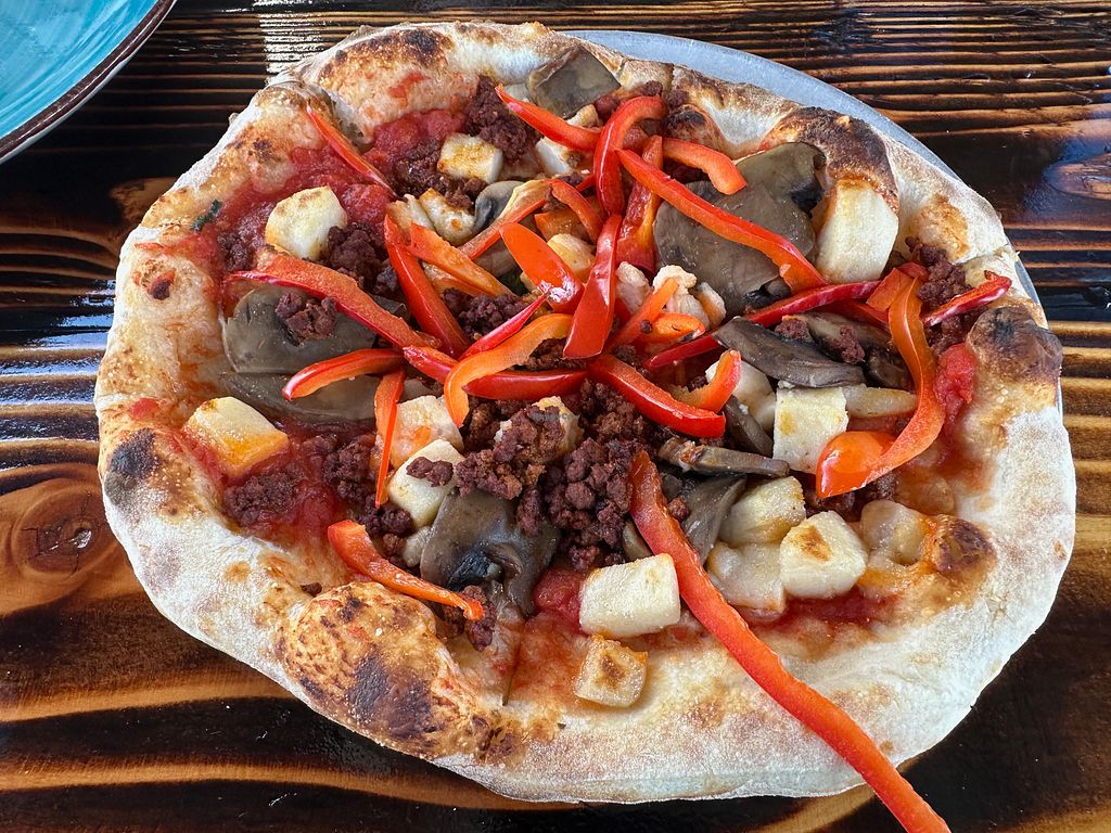 We had the potatoe tacos, the okc pizza & the blockhead pizza. All were amazing!! I love it when they have clearly marked vegan items. The crust on the pizzas was done perfectly. We’ll definitely be back!