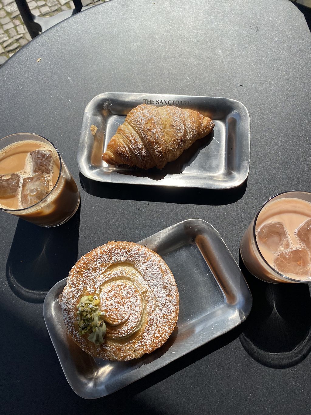 amazing bakery, pistachio pastry and vanilla filled croissant
