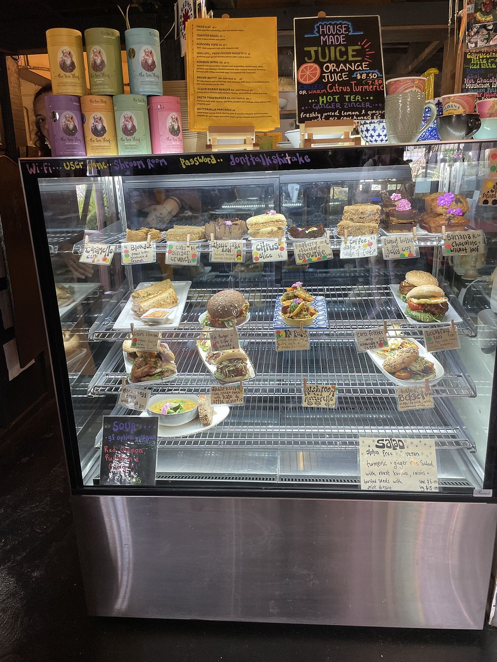 Such a cool place and food looked amazing - wasn’t hungry but saw lots go out and it looked great… All the girls were super friendly and the options are easy to tell if it’s vegan or vegetarian. Not expensive, and the coffee was good