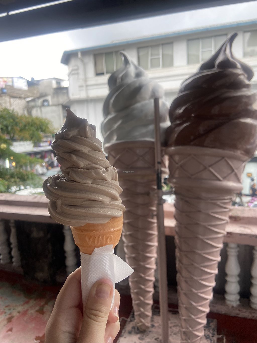 The two flavours when we went were chocolate and strawberry. Strawberry was the winner, by far. It was great to see so many nonvegan locals enjoying it! Our tuktuk driver said it's a popular spot.