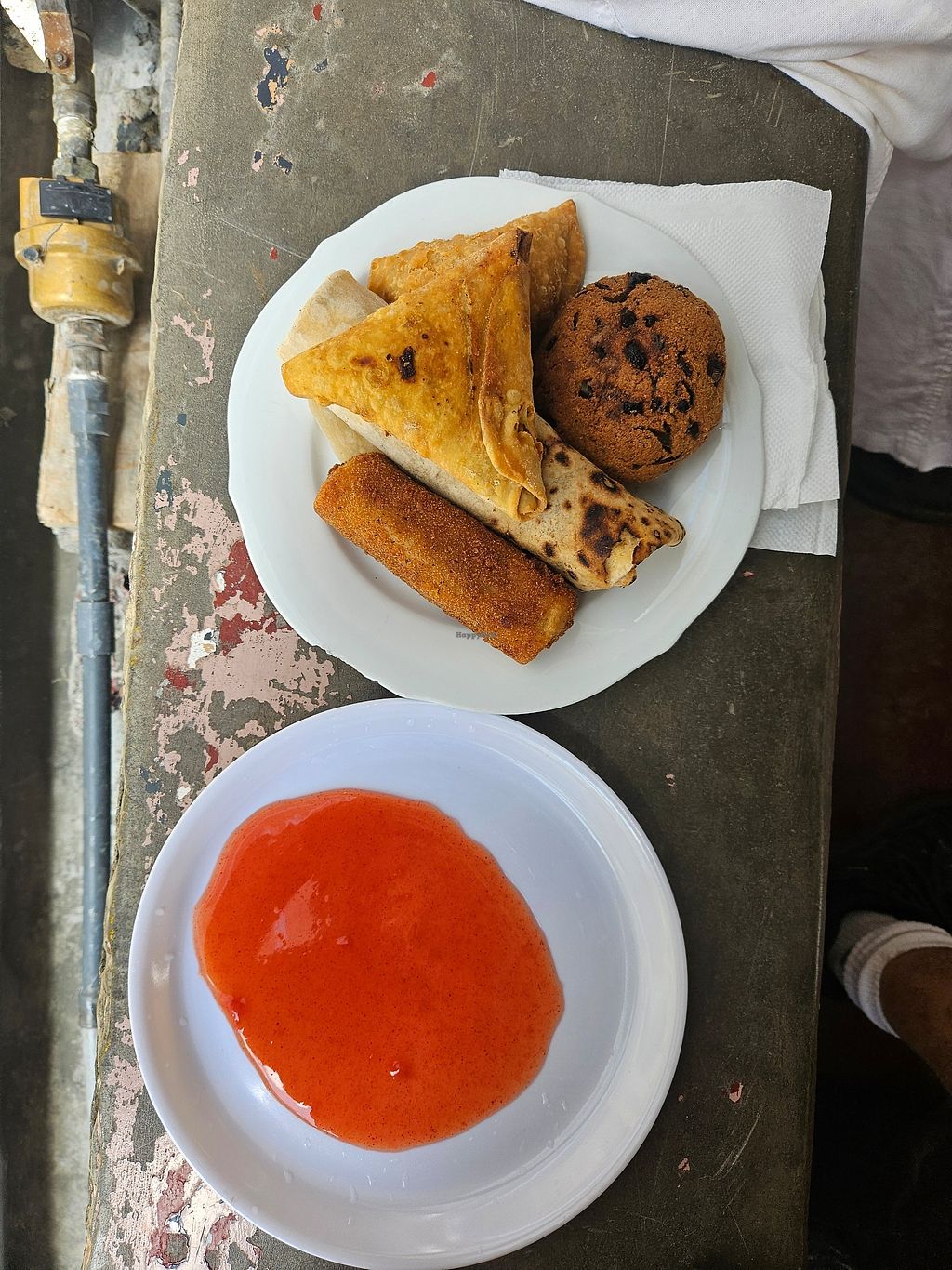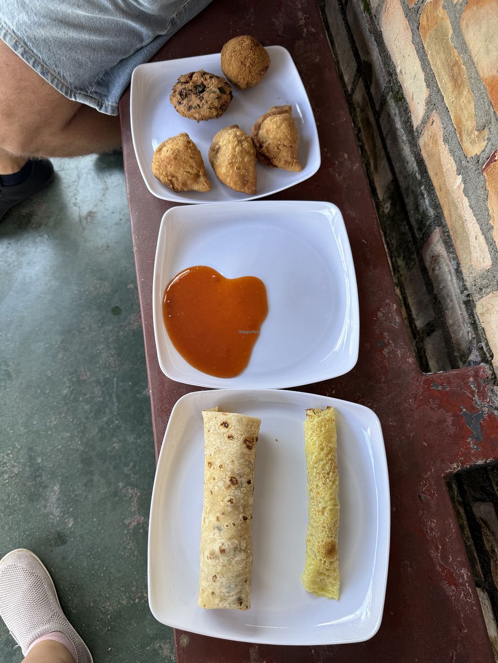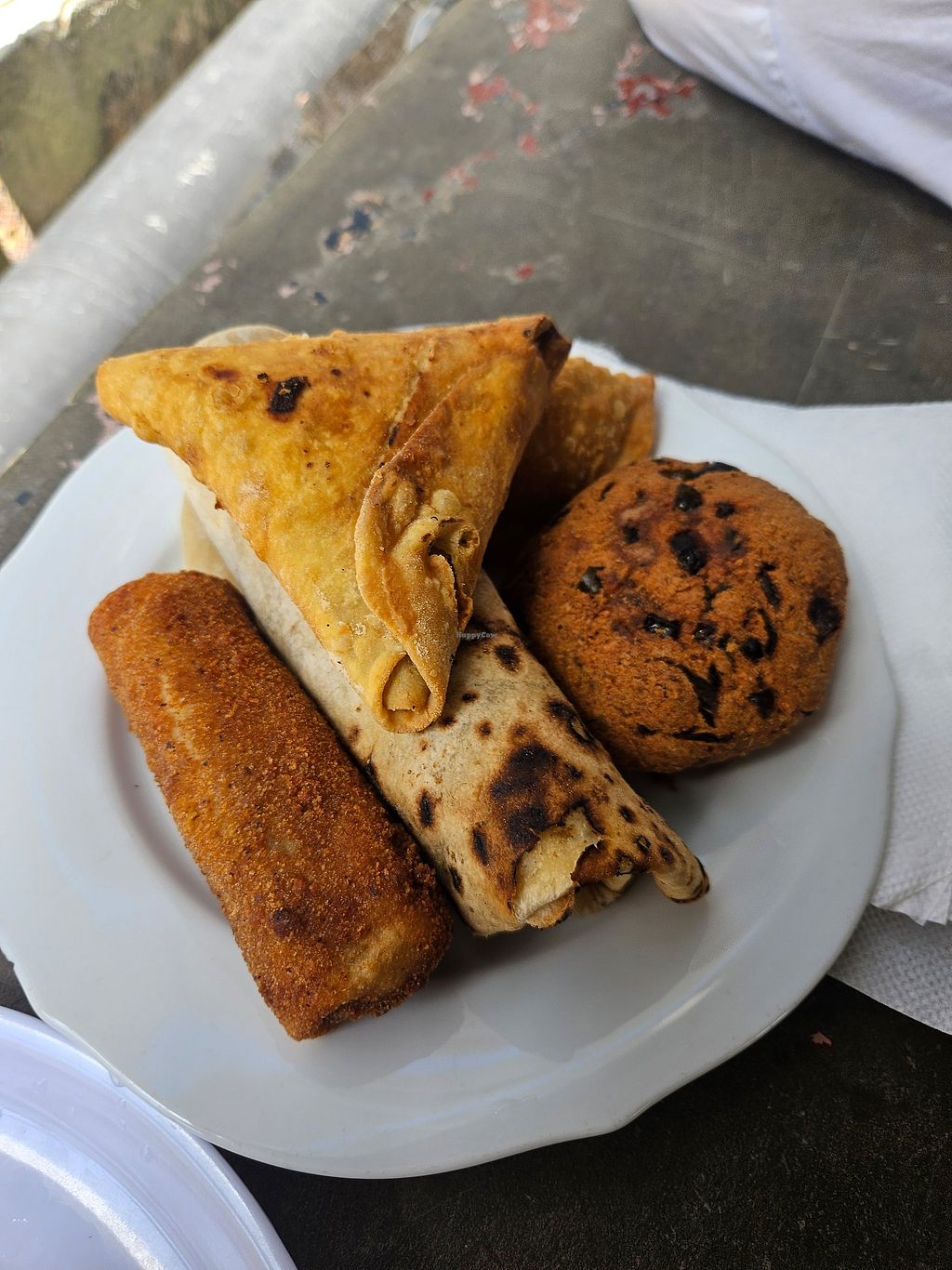 We had 2 soy rotti's, a soy chinese roll and a veg samosa. All had a good taste and a good fill for 2 people. Warmed up in the microwave before given to you.