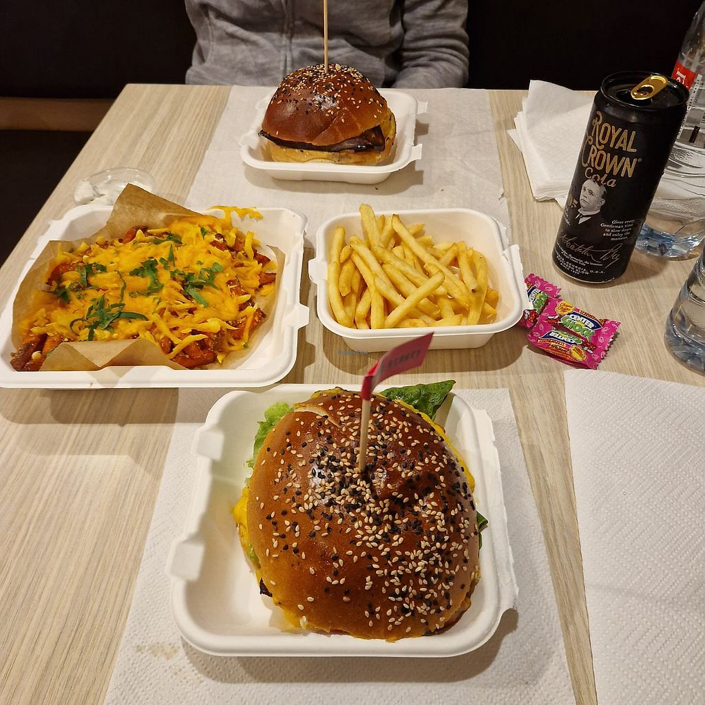 Delicious vegan burgers! I had burger with peanut butter sauce and cranberries. I enjoyed the visit a lot.