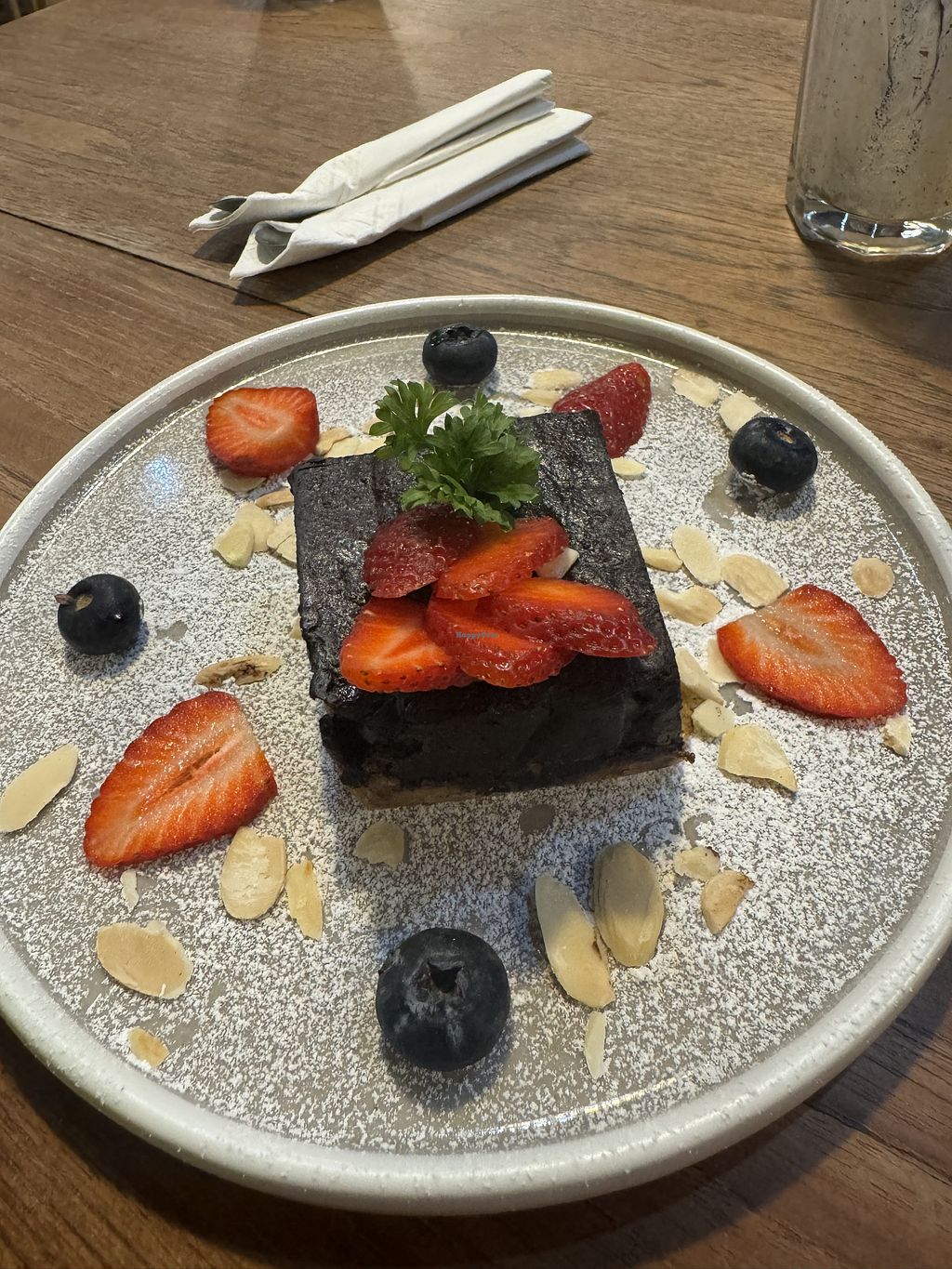 We ended up ordering a burger and a falafel dish after browsing the menu for a long time. Both were beautifully presented and wonderfully tasty. We will def be back! Yes it was expensive, but it was freshly prepared. Well worth it!