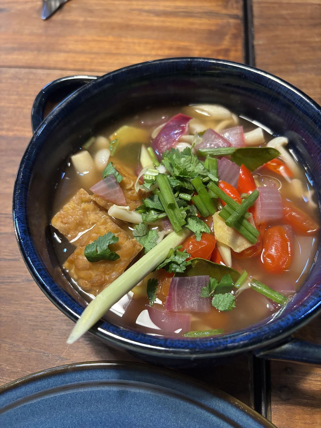 Everything is vegan here. The menu sounds tasty and I had a Thai dish. The vegan chicken was really good!