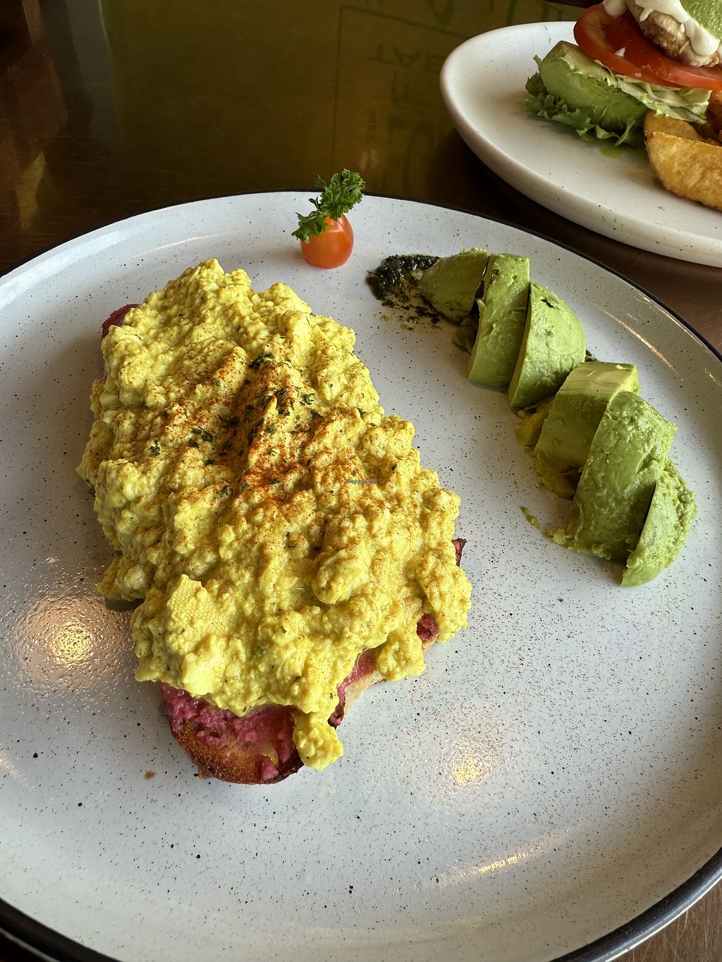 Read moreI had the Scramble Tofu toast which was bomb! I also had the Avo Chicken Sandwich- when they said Avo patty, I didn’t realize they meant it was an actual avocado sliced in half which made it pretty difficult to eat, especially since the “chicken” was very tough and hard to cut or chew. I’d get something else on the menu, since their tofu was great.