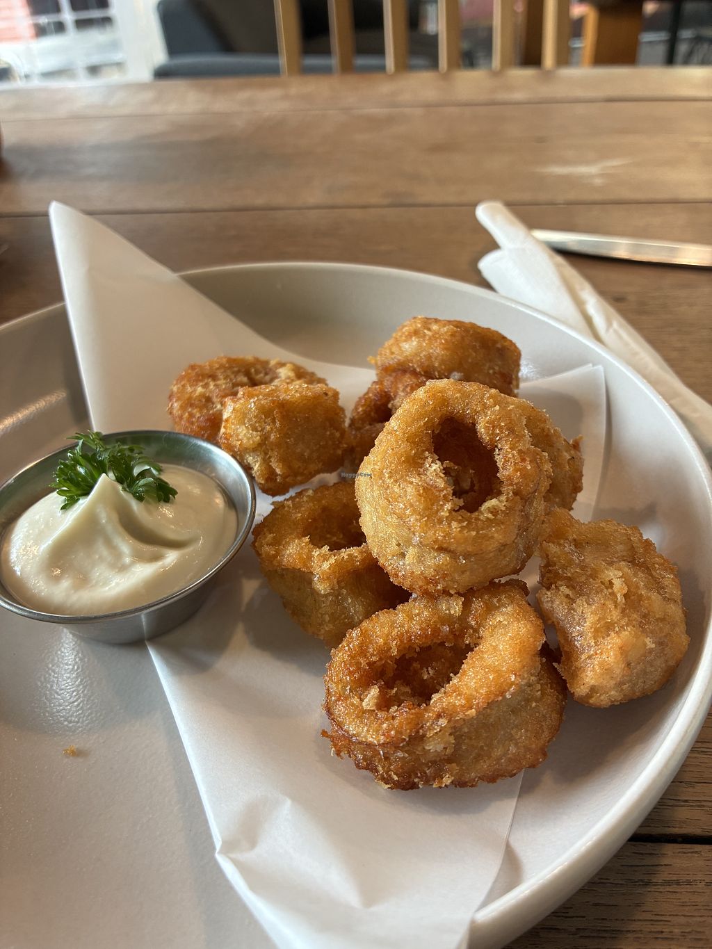 We ordered the chicken and mushroom pie, calamari rings, chocolate tart, and the white pizza. The pizza was my least favorite, but it was harder the swallow the price tag. On the plus side, their menu is big so you can visit multiple times.