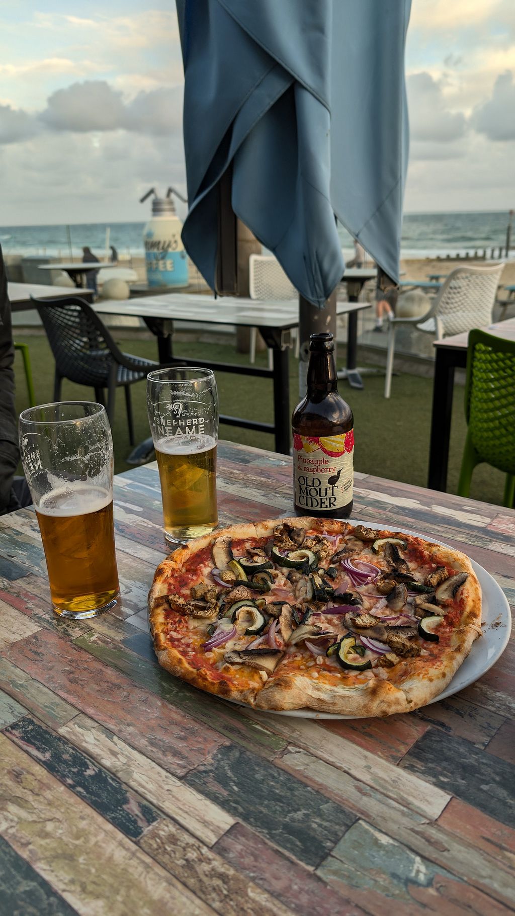 really yummy pizza & the vegan cheese was amazing. nice to be sat right by the beach. friendly staff :)