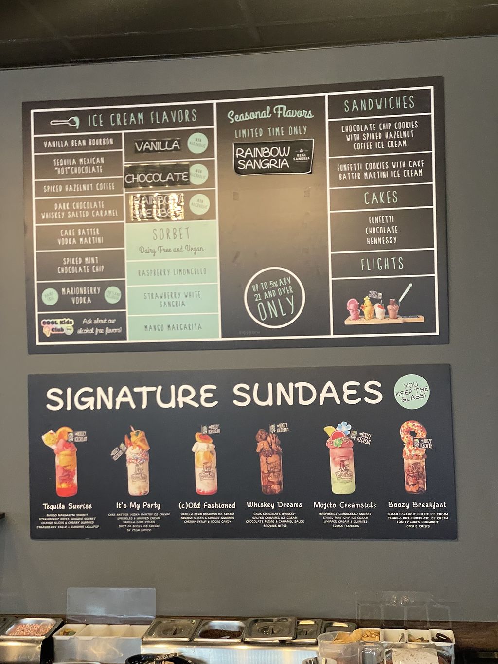 Offers alcohol and non-alcohol ice cream with some vegan options. Open Mon-Sun 11:00am-11:00pm.