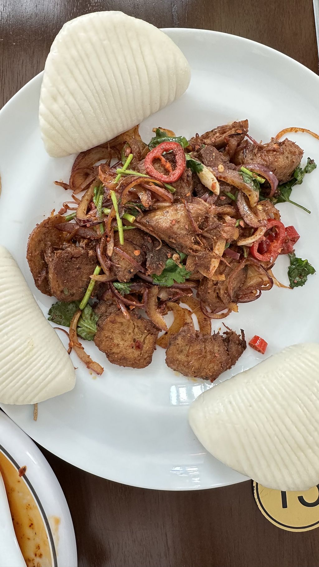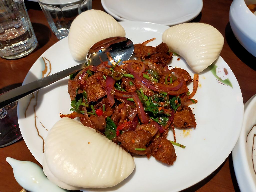 Previous reviews encouraged us to visit and we concur! We arrived late afternoon and they were not busy. From the moment we walked in they were attentive, friendly and helpful. Charming restaurant with indoor and outdoor seating. The host guided us on suggestions(thank goodness, as everything looks good) for our first visit and they were all very good… wontons, mushroom salad and cumin lamm. My husband did note he thought there was a bit too much oil in the sauce of the mushroom salad and the wontons. The spice level was perfect for us, and we like spice.