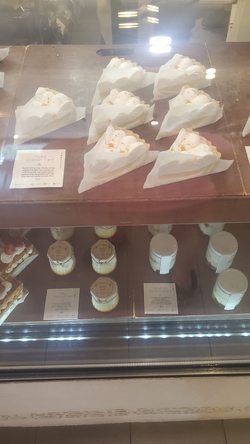 We had the Pistachio Green Tea Tart and Yuzu Citron Tart in the cafe, both were fantastic. We also took the Tiramisu and Flan to go. we had several hours before heading home and I wouldn't recommend taking the jarred, refridgerated desserts to go unless you're planning on eating them very soon. After warming in our bag and then re-cooling in the fridge the Tiramisu and Flan were at their best, but still tasty.