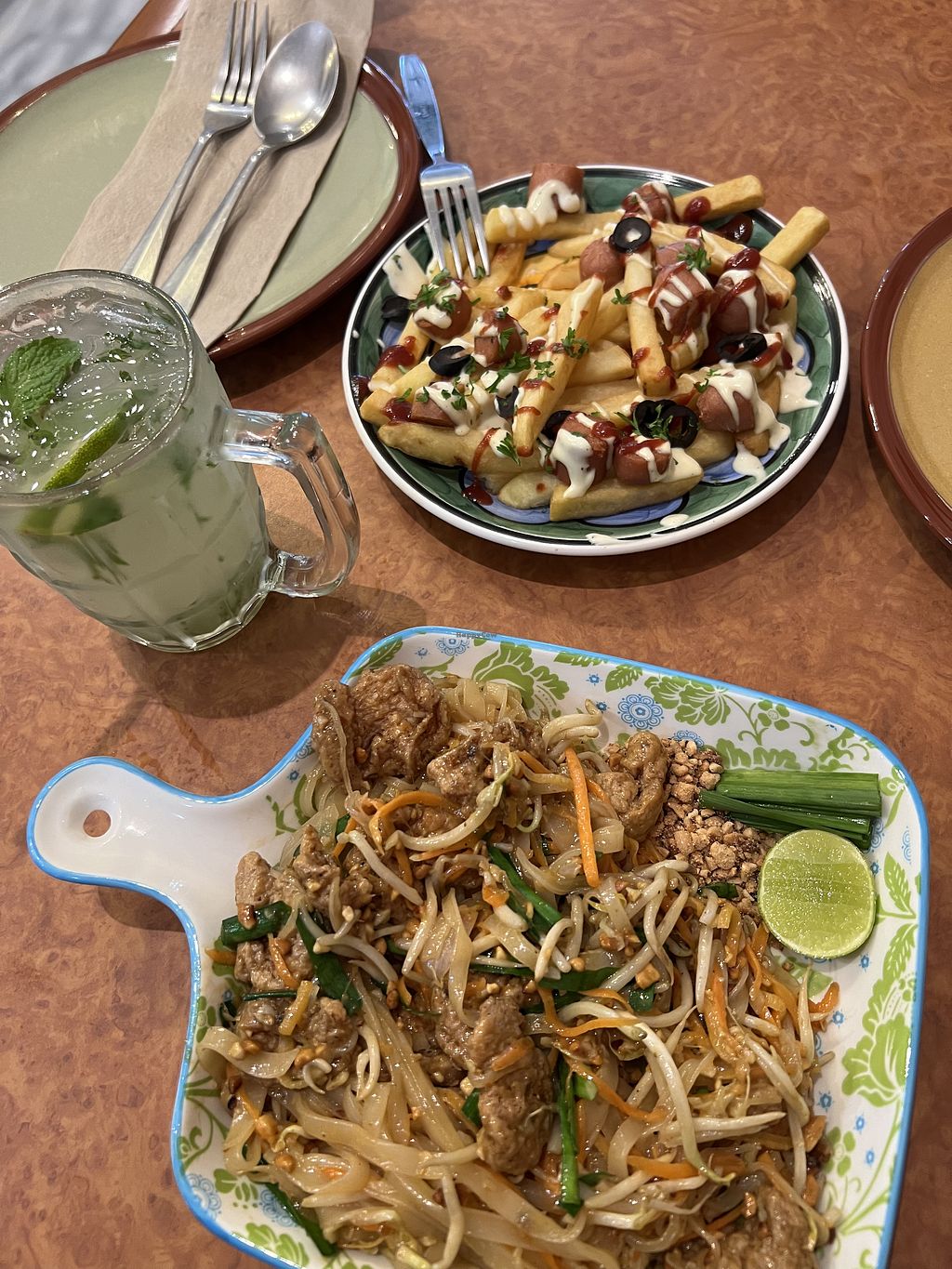 I was actually on my way to a restaurant but happened to stumble across here instead and I was so happy I had!! The menu is massive a there is something for everyone! I love how the menu is designed and the extra bits at the back giving their story & some recommendations. The food was lovely and came out very quick. I had the pad Thai and my fiancé had the sausage loaded fries which he really enjoyed considering he’s not a vegetarian!!
