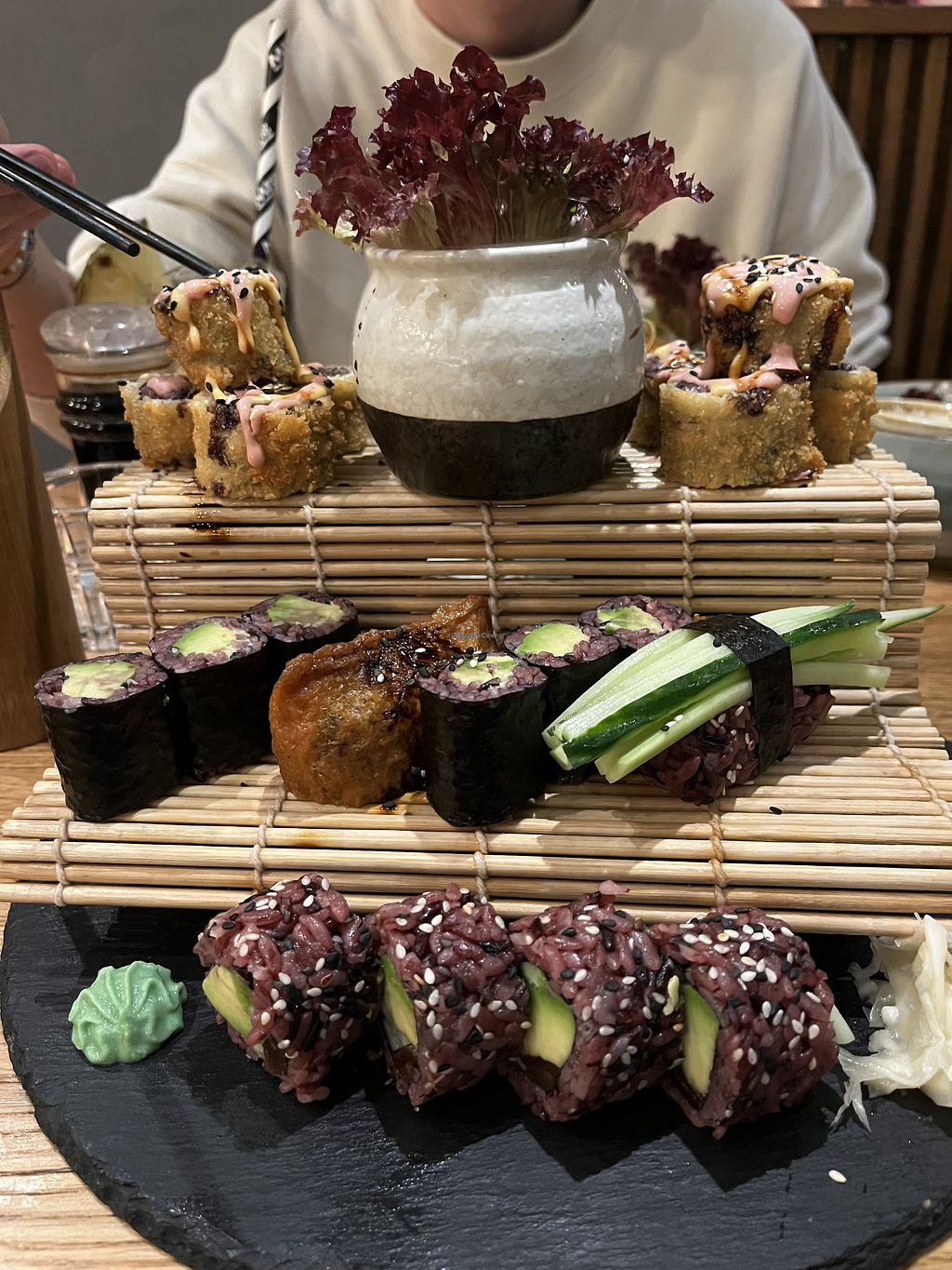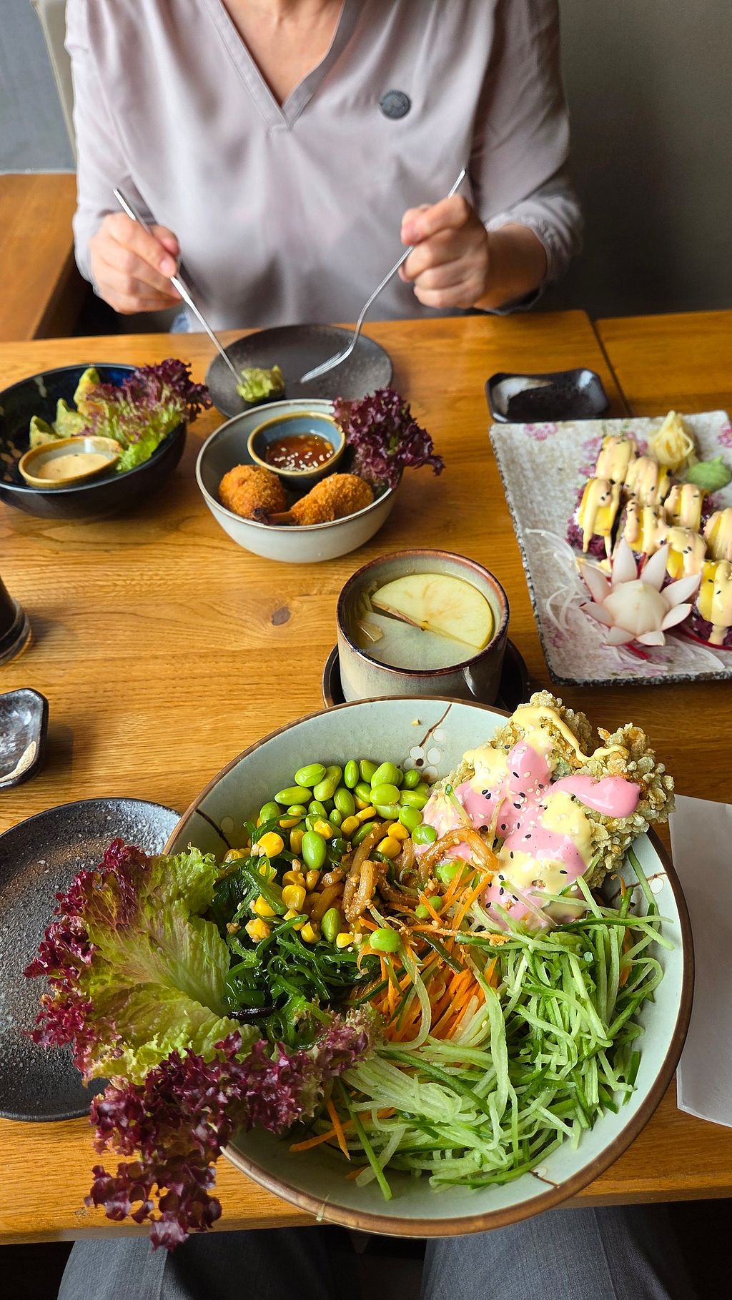 Ich muss leider sagen, dass mir das meiste nicht so gut geschmeckt hat. Es war alles super hübsch aber ich hatte das Gefühl, es ist mehr fürs Auge als für den Geschmack. Die Nudel-Rollen waren super lecker - aber etwas schwierig ohne Sauerei zu essen. Service war sehr freundlich.