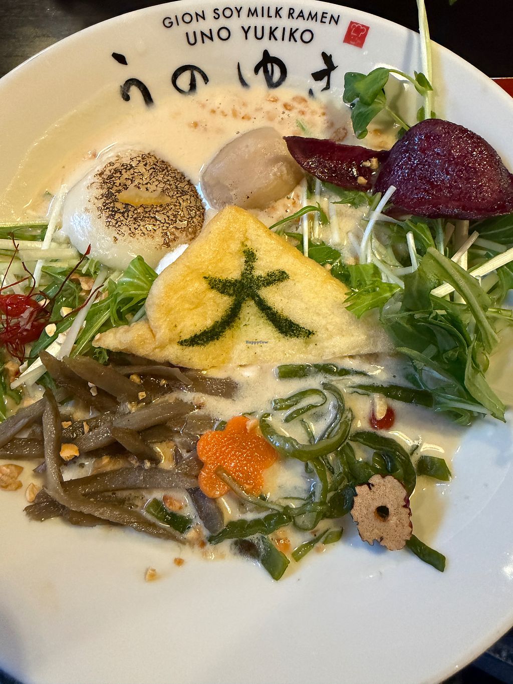 The food here is indeed crafted with care. This place makes their own soy milk and uses it for their ramen, desserts and the okara for croquettes. We had the soy milk ramen with croquettes as well as a chocolate cake. Everything was delicious. The noodles are gluten free but they were cooked Al dente and were delicious. The ramen came with toppings of gyoza, vegetables, sprouts and some sort of savory vegetable that was crunchy and tasted like it was marinated in soy sauce. Highly recommend this place! There is also a dessert vending machine outside that sells cakes.