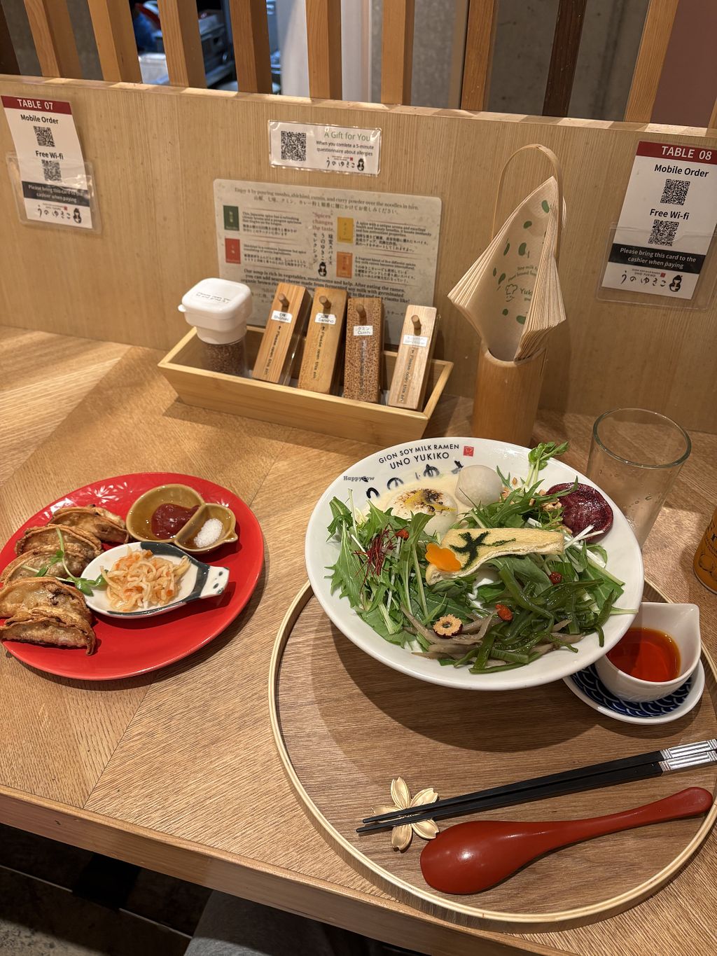 Read moreOnce seated you can order with a QR code, they have an English menu and everything is vegan and gluten free. They have a selection of ramen, sweets, gyozas and other bits and bobs. You can order for take out as well and they also have merch, a sweet selection box, chopstick holders etc. You can also add extra toppings to the ramen or ask for half portion or soy noodles.