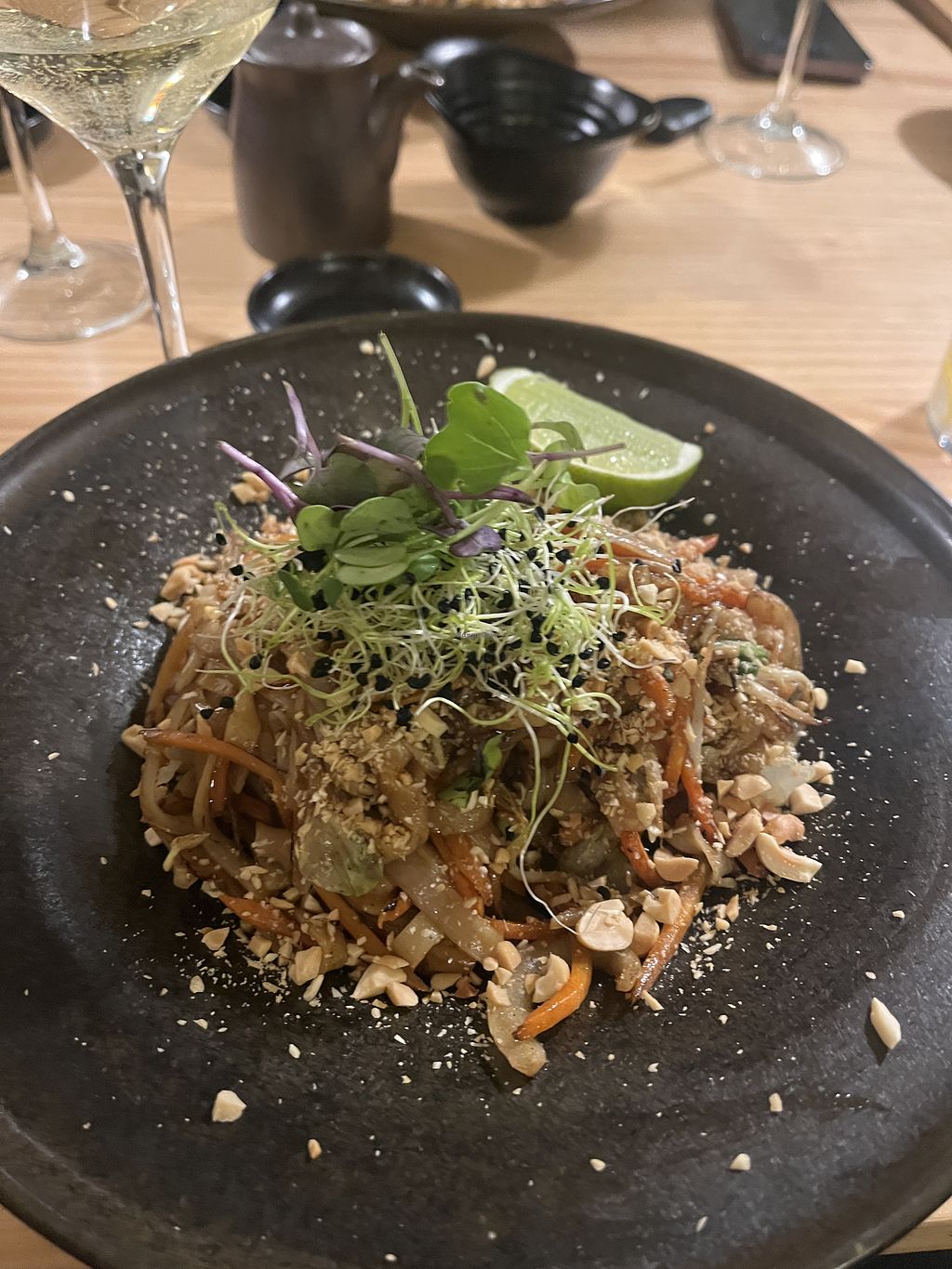 There’s a separate vegan menu with options like pad thai, sushi, poke bowl and desserts.