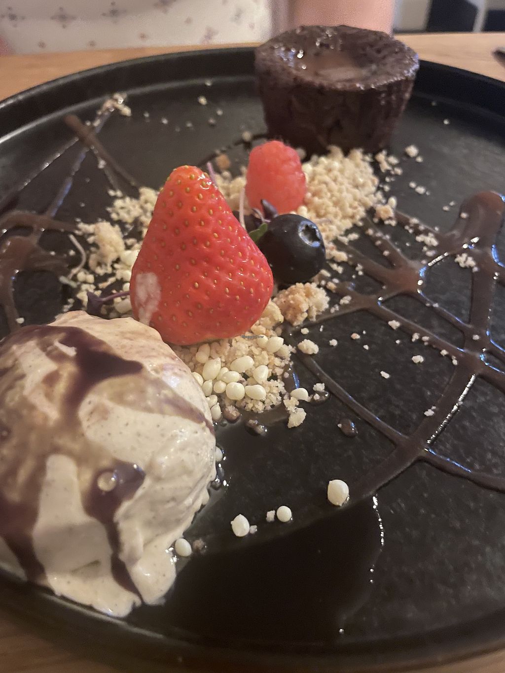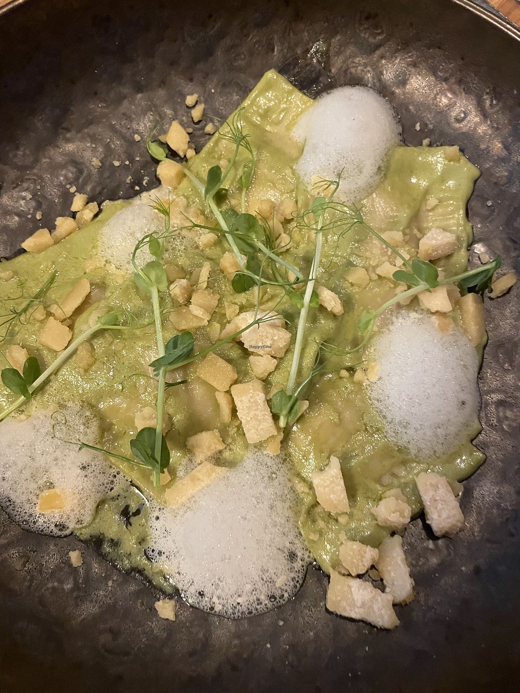 Das Essen war absolut lecker! Wir hatten das Brot mit Tomatenbutter und die Spargelsuppe vorweg; als Hauptgang die Ravioli und den grünen Spargel mit Blätterteig und als Dessert das Panna Cotta und das Schoko malheur. Alles sehr schön auf den Tellern dekoriert ! Alles vegan !!!