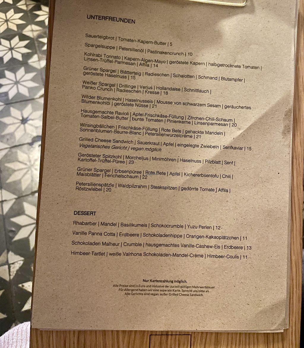 Read moreWunderschönes anbiete und sehr gutes essen - hauptsächlich Vegan mit einigen Vegetarischen Optionen. Sehr besondere Weine auch hauptsächlich vegan. Hervorragender Service und alles in allem eine richtig schöne Erfahrung!