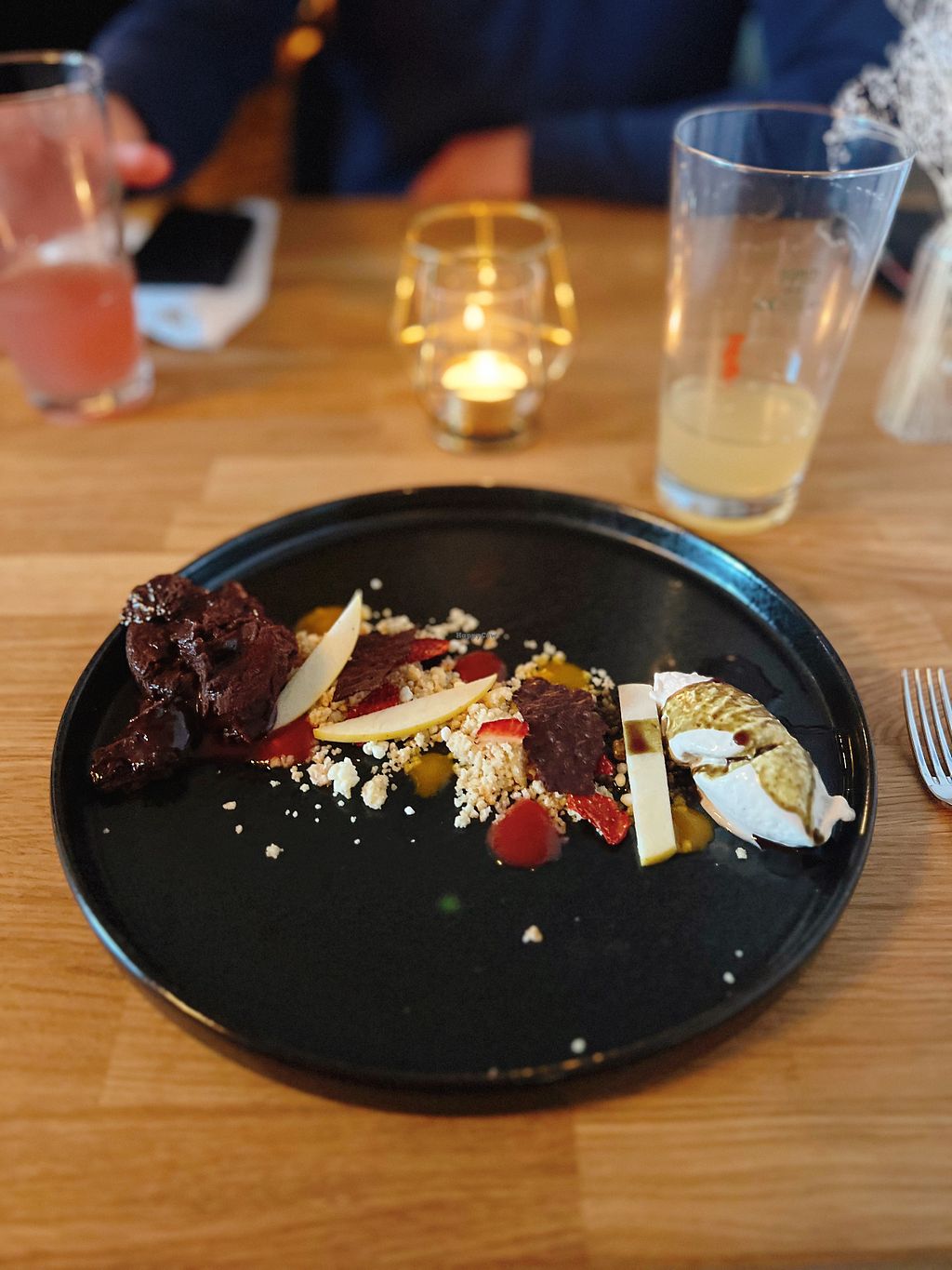 Richtig traurig waren wir dass ausser der Käseplatte kein veganes Dessert in der Karte stand. Ganz ehrlich sind die Portionen einfach zu klein um mit 2 Gängen satt zu werden.