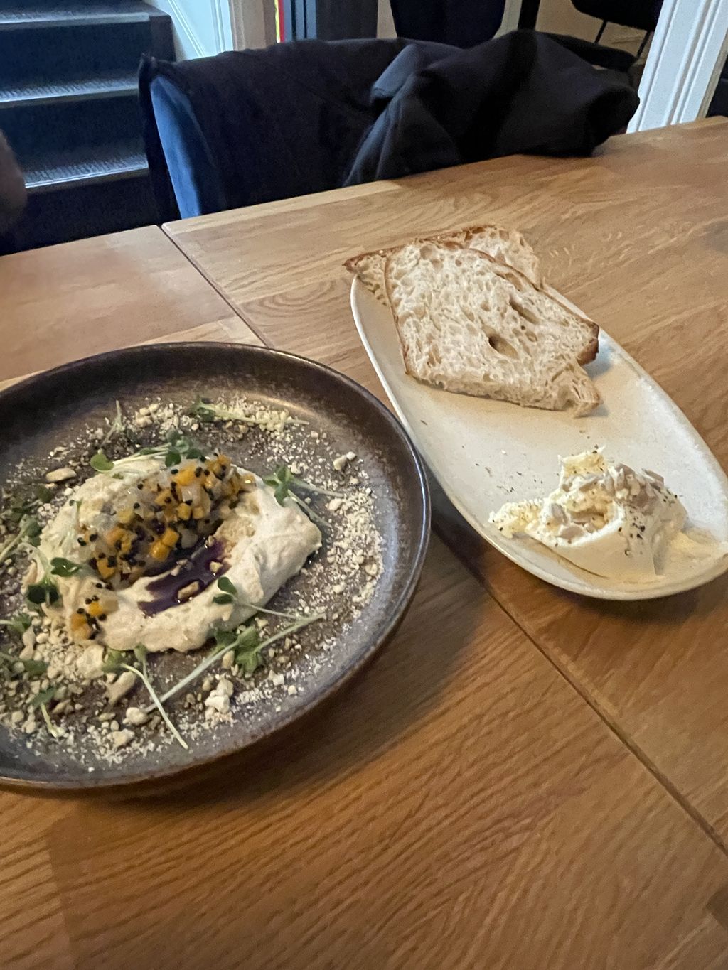 Tolles Konzept, toller Koch, sehr schön und modern eingerichtet. Wir hatten das Brot mit Butter vorweg, Spätzle und Sellerie zum Hauptgang und Käse und Schoko Malheur zum Dessert. Alles vegan 🌱 es war fantastisch.