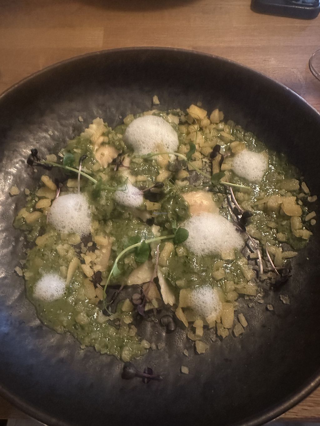 Beautiful ambience and really great food- mostly vegan with some vegetarian foods. Especially fancy wines, mostly vegan too. Great service and overall a glowing experience!