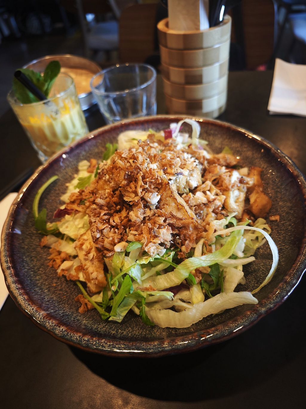 Read moreI had Mango Lassi and also tried the Lemon Ice Tea. To eat I had Vegan Dumplings and #60, Fried Udon with vegan duck. Everything was really tasty! I especially liked the Lemon Ice Tea and the fried udon. The Lemon Ice Tea was not too sweet but very tasty. The portion sizes were nice too.