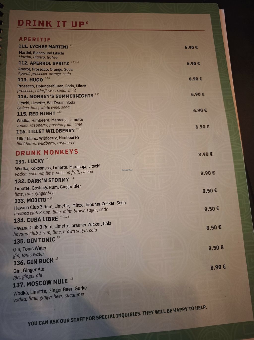 staff was friendly but we felt a bit watched since they kept standing in the door frame and looked if everything was alright.