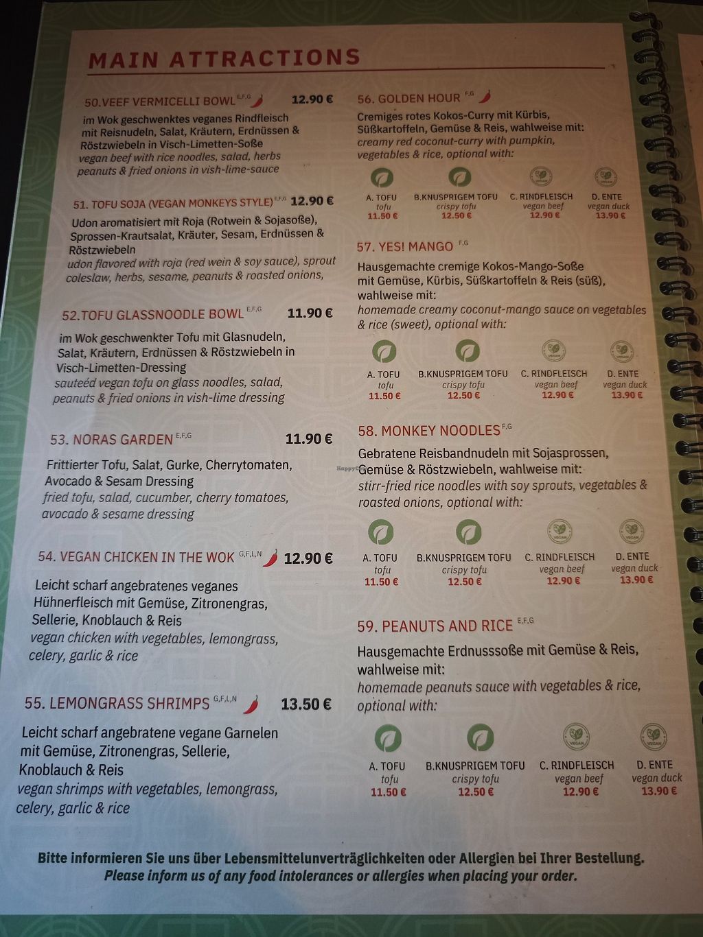 Die Speisekarte bietet eine sehr umfangreiche Auswahl an leckeren veganen Gerichten zu einem großen Menge mit einem fairen Preis.