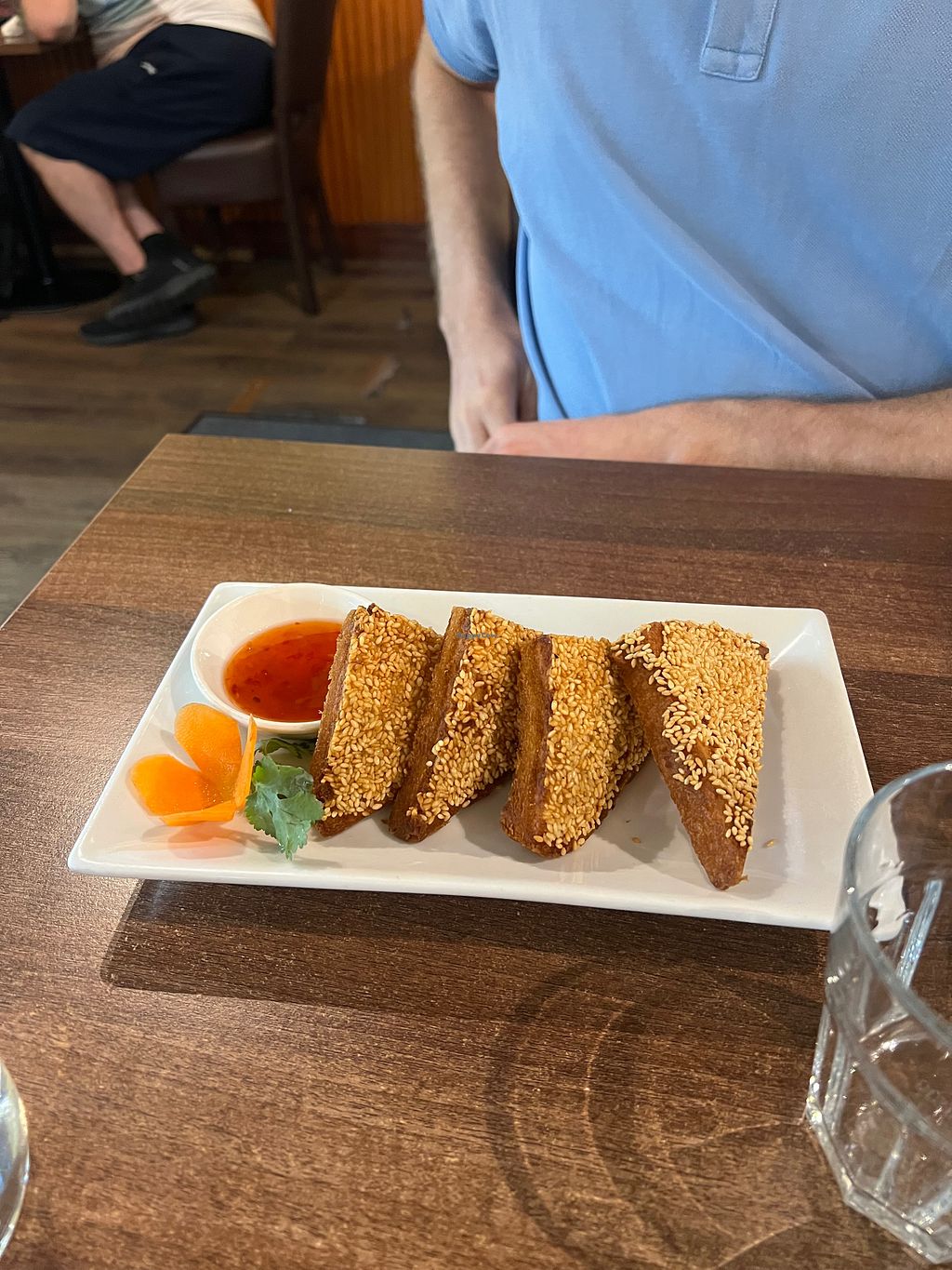Read morePrawn toast which was tasty, satay skewers which were delicious and a favourite of both of ours, salt and pepper tofu which was nice although the tofu had a strange texture, almost pillowy?