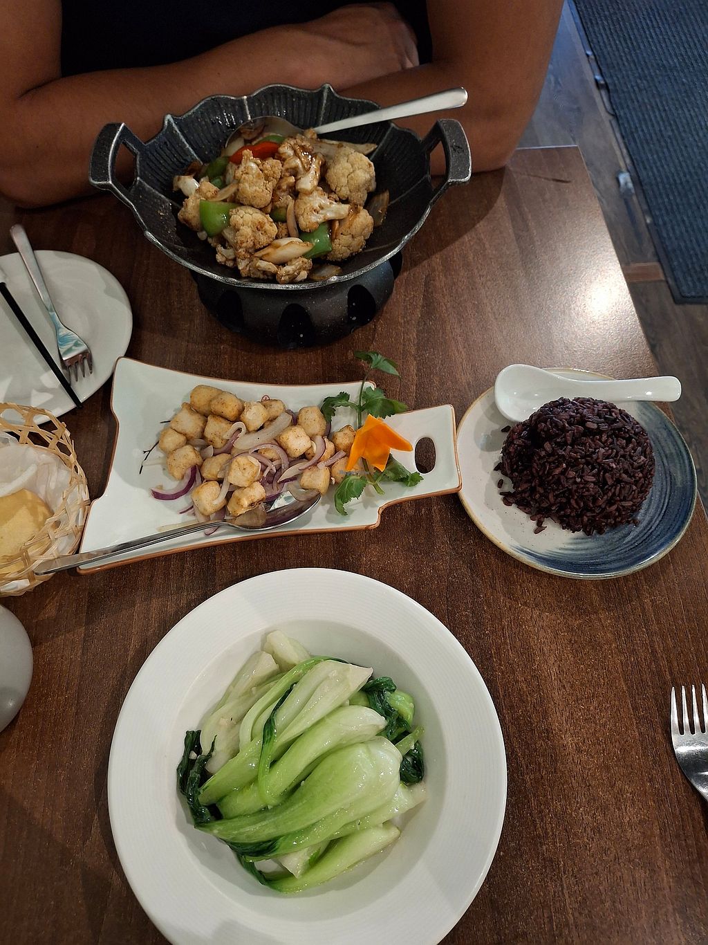 Delicious food but a bit expensive. We had cauliflower, bok choy in garlic sauce, tofu and black rice. The flavours were really good. Even the tofu was very flavourful, but I think they used a lot of salt (tasty of course, not so healthy). As a dessert we had a chocolate caramel cake, yum! We paid €56, I think that's quite expensive. They also charge extra for the tip. They call it "optional" but you don't really have a choice.