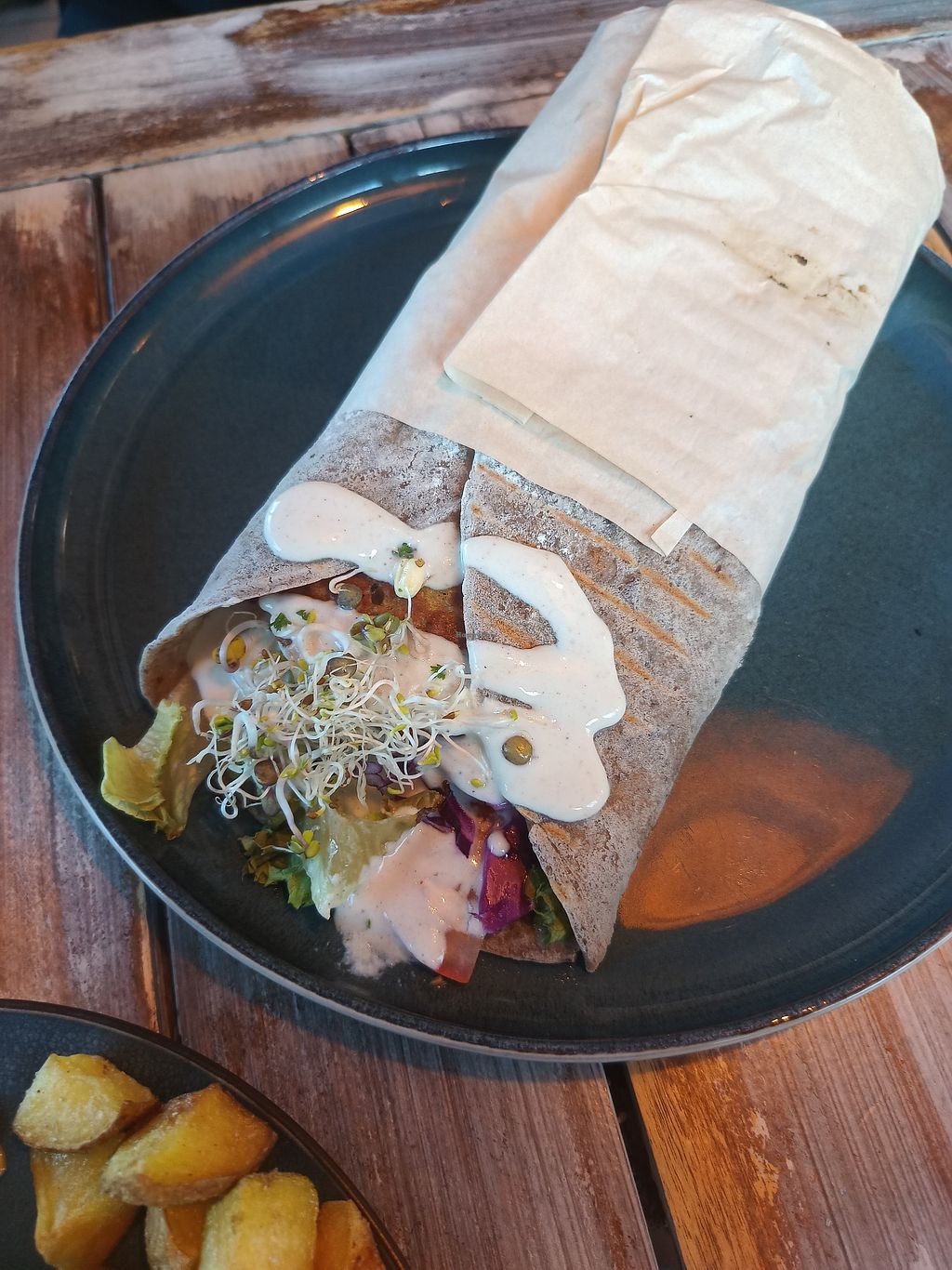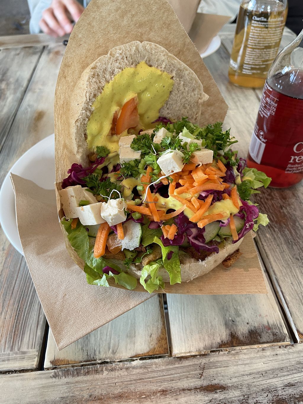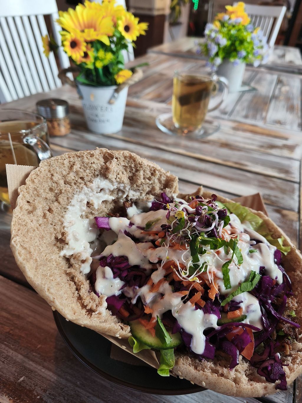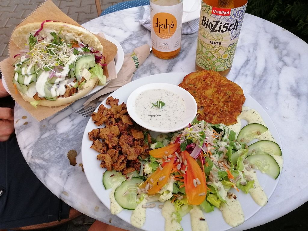 Read moreWe ordered the wrap with garlic-yogurt sauce and the “Vegateller” (a mixed plate of various components). To drink, we had “Gesöff” (highly recommended!), the homemade iced tea, and the lemon-ginger tea. Everything was super tasty and clearly freshly prepared, which meant it took a little longer to arrive but that honestly didn’t bother me at all.