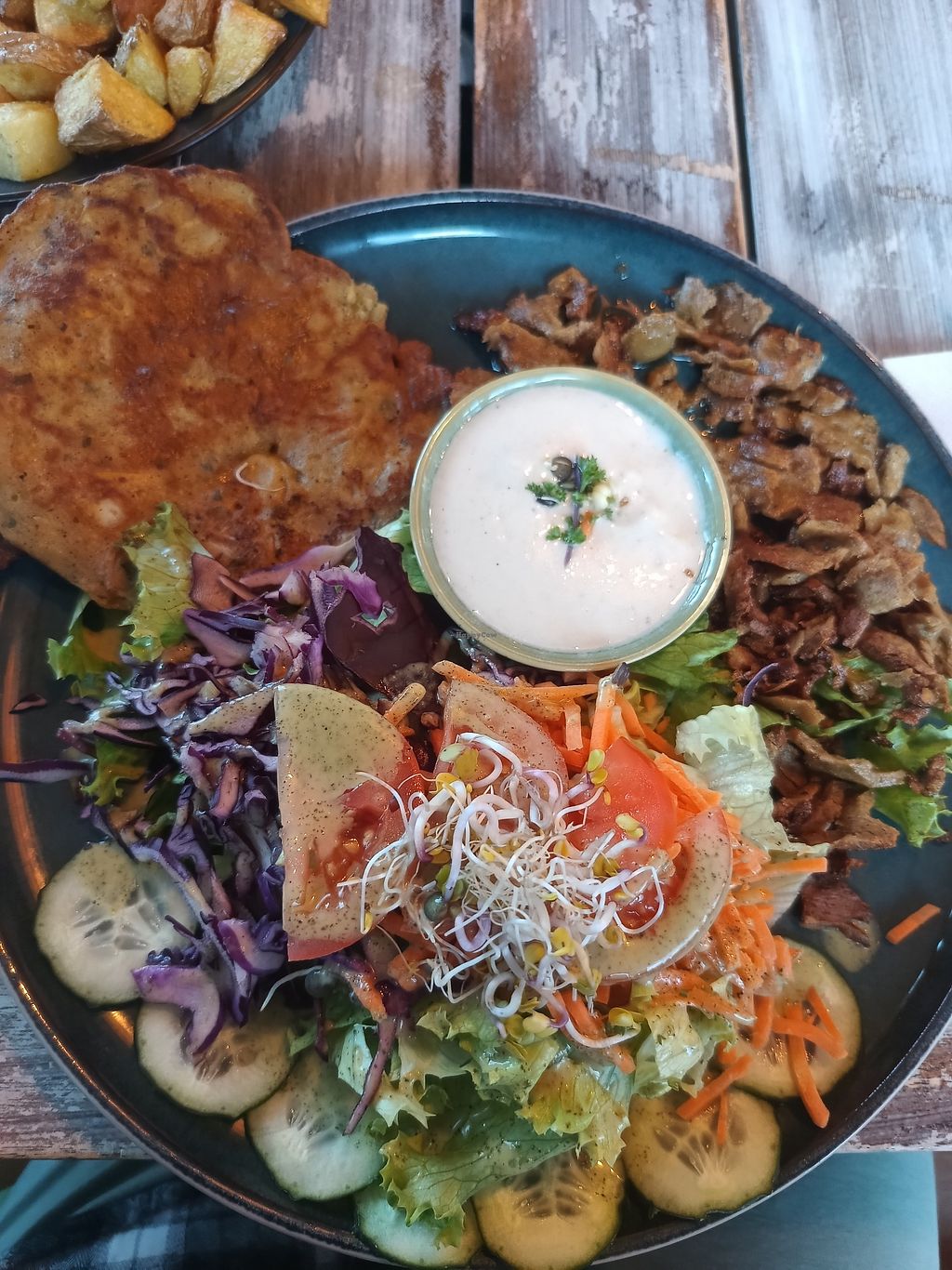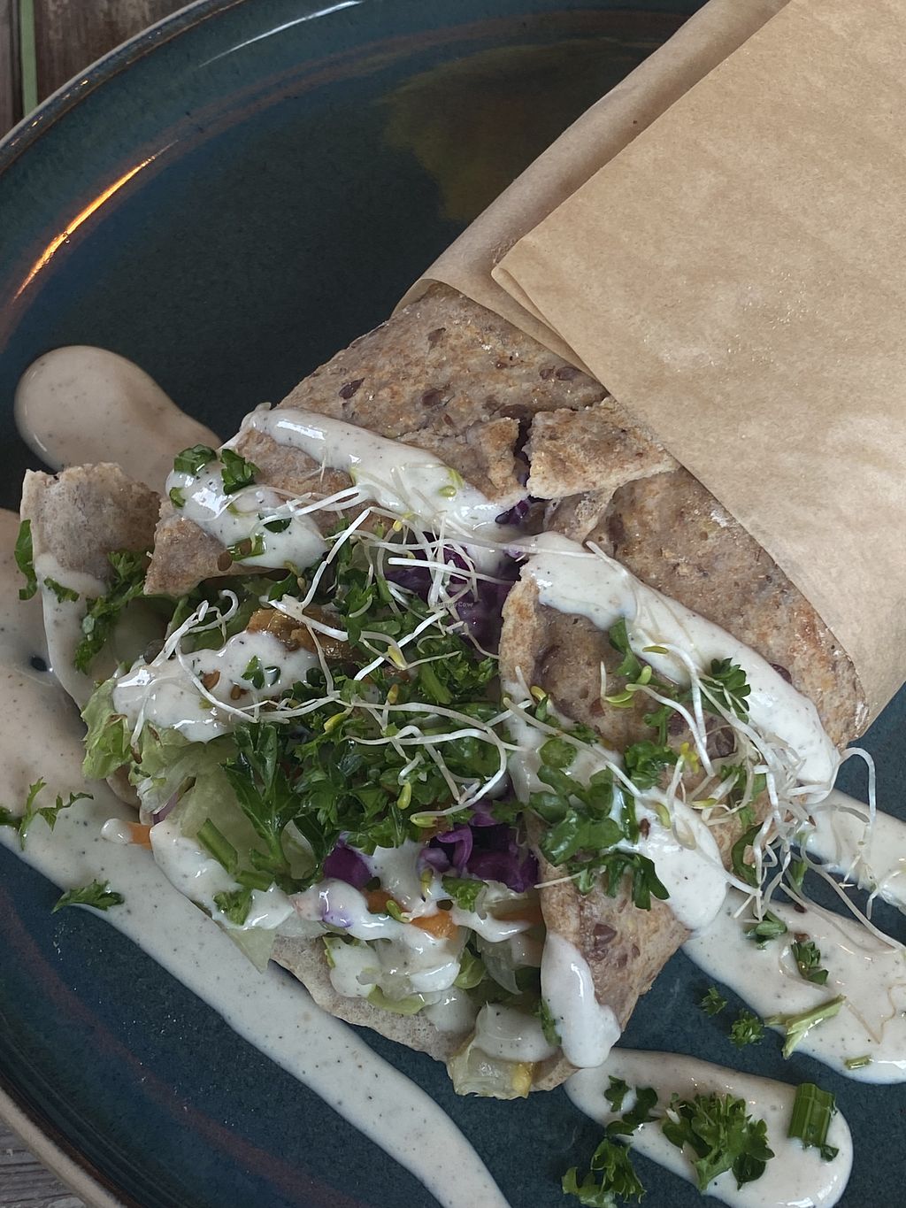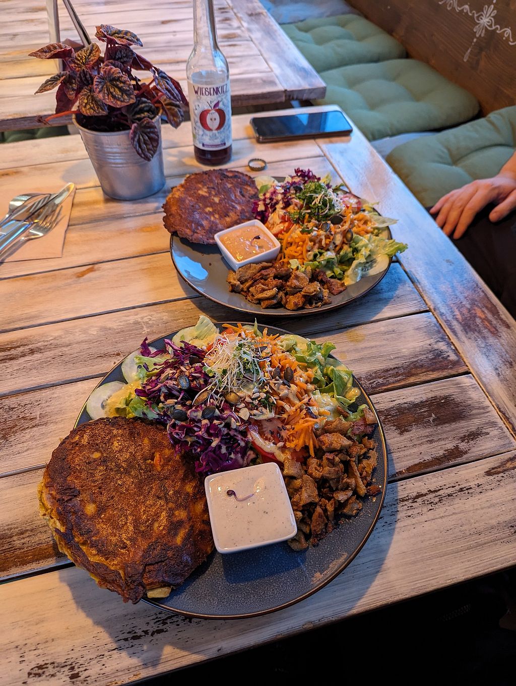 Read moreWe ordered the wrap with garlic-yogurt sauce and the “Vegateller” (a mixed plate of various components). To drink, we had “Gesöff” (highly recommended!), the homemade iced tea, and the lemon-ginger tea. Everything was super tasty and clearly freshly prepared, which meant it took a little longer to arrive but that honestly didn’t bother me at all.