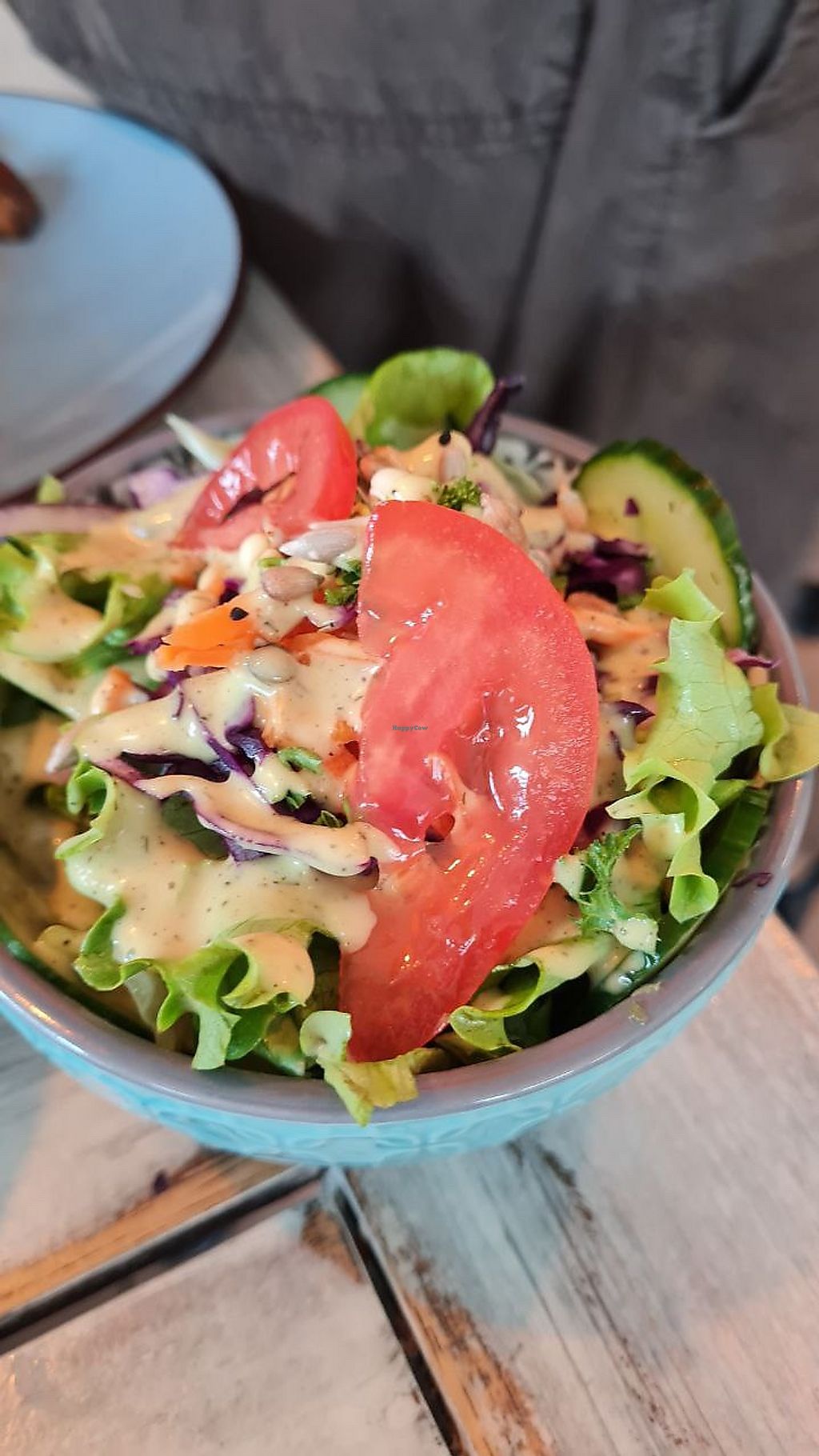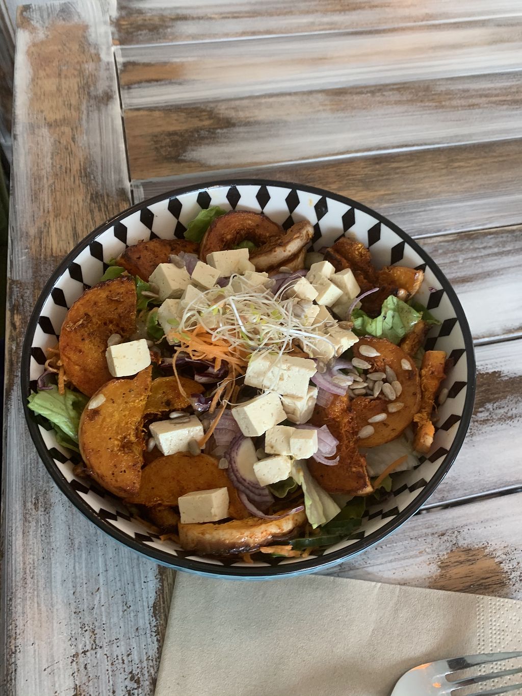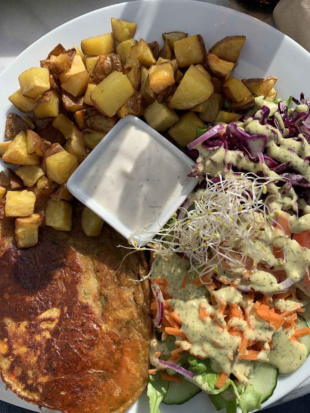 Hatte den Vegateller mit Currysauce und Chilikohl. Frisch, voll Geschmack, knackiger Salat, was will man mehr.