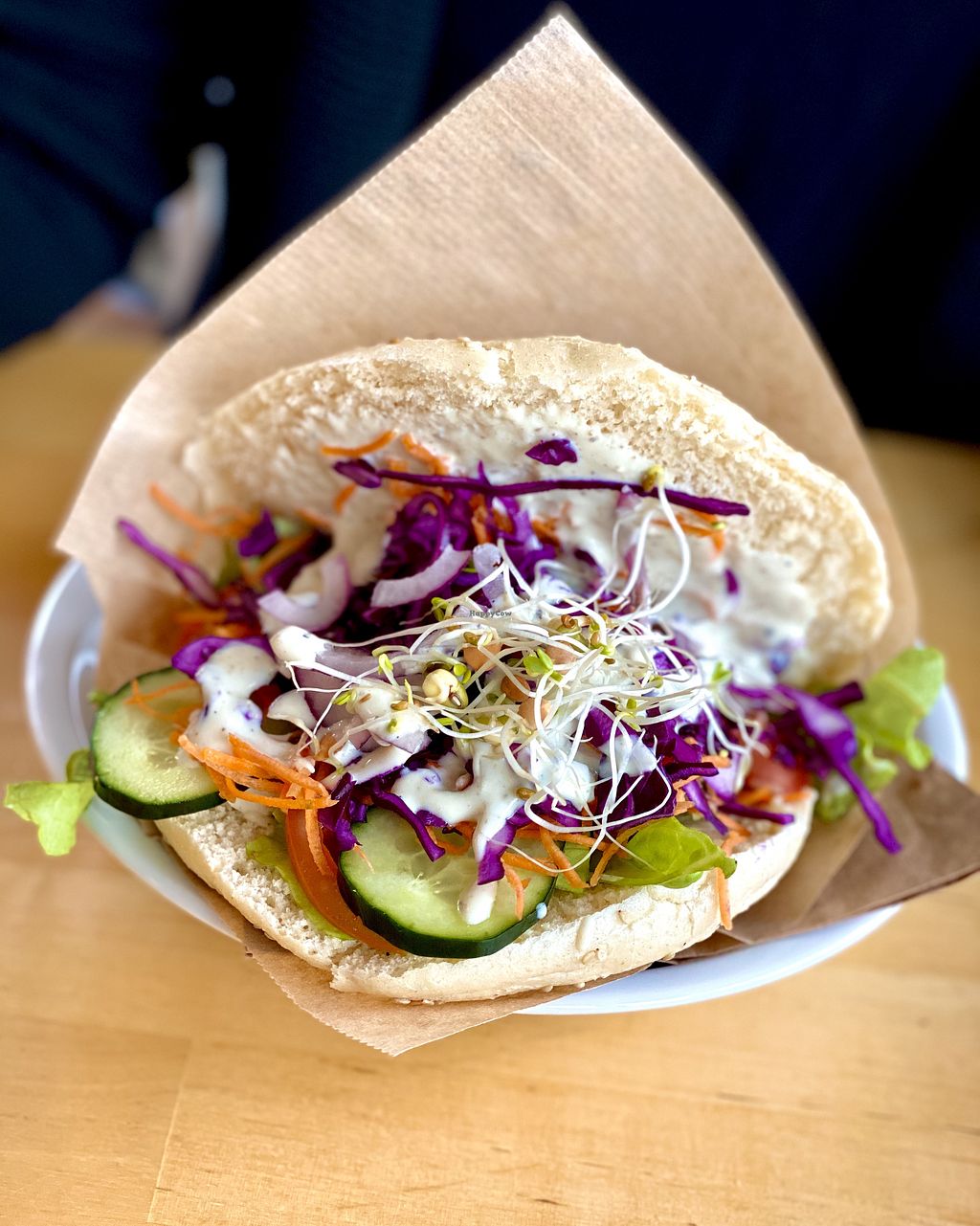 Sehr nette Leute und leckeres Essen dort. Ich hatte einen Seitan Döner mit Knoblauchsoße probiert gehabt. Ausreichend große und leckere Portion. Auch ästhetisch angerichtet. Das Gemüse war frisch und knackig. Und dazu noch alles Bio Zertifiziert! Ich komme gerne wieder, um den Rest der Speisekarte zu probieren. Auf jeden Fall einen Besuch wert!