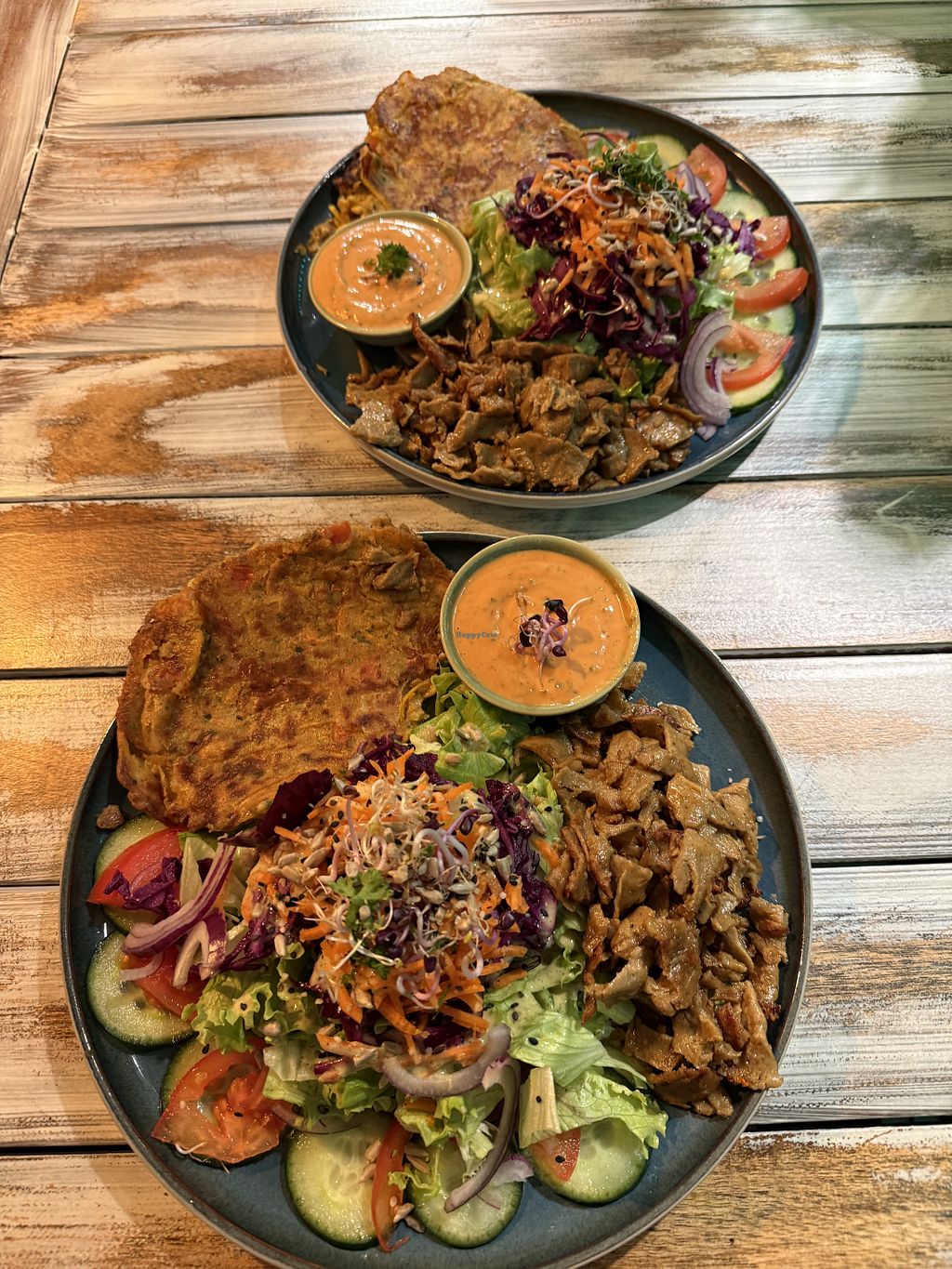 Vegateller, Wrap und Bratkartoffel - alles super lecker.