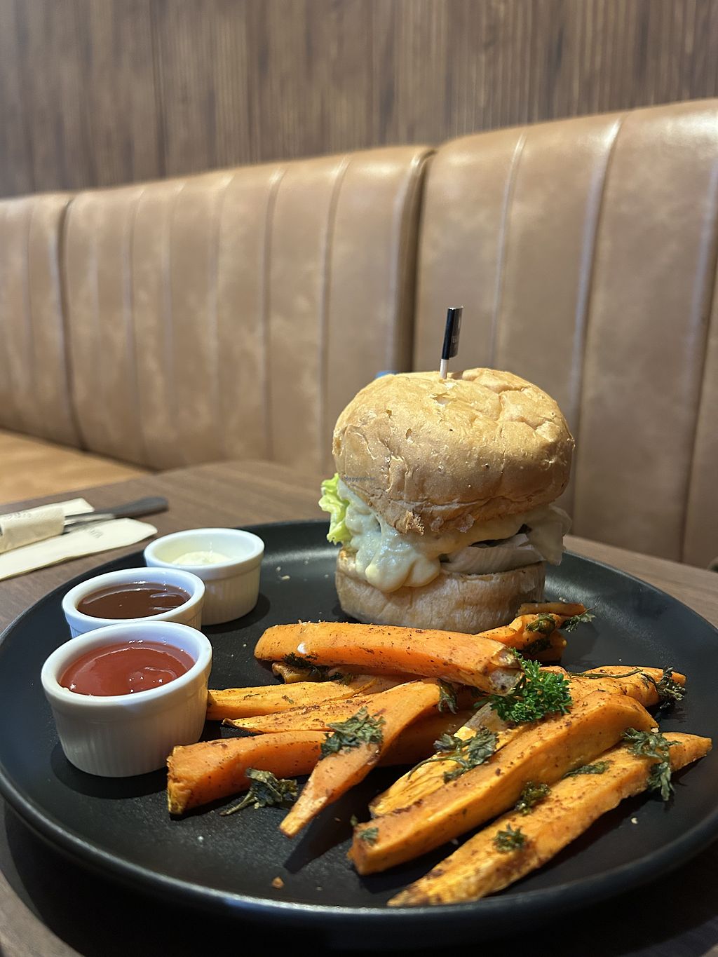 Ate here May 2025 as a single male vegan travelling for work. The menu was very large so it took me a long time just to decide what to have! It is very varied with Asian, burgers, Italian, wraps, salads, cakes, smoothies, etc. I believe you can also get a lot of it delivered via the Grab app.