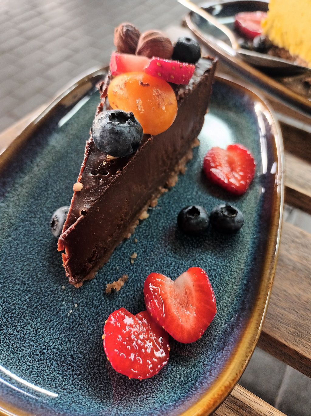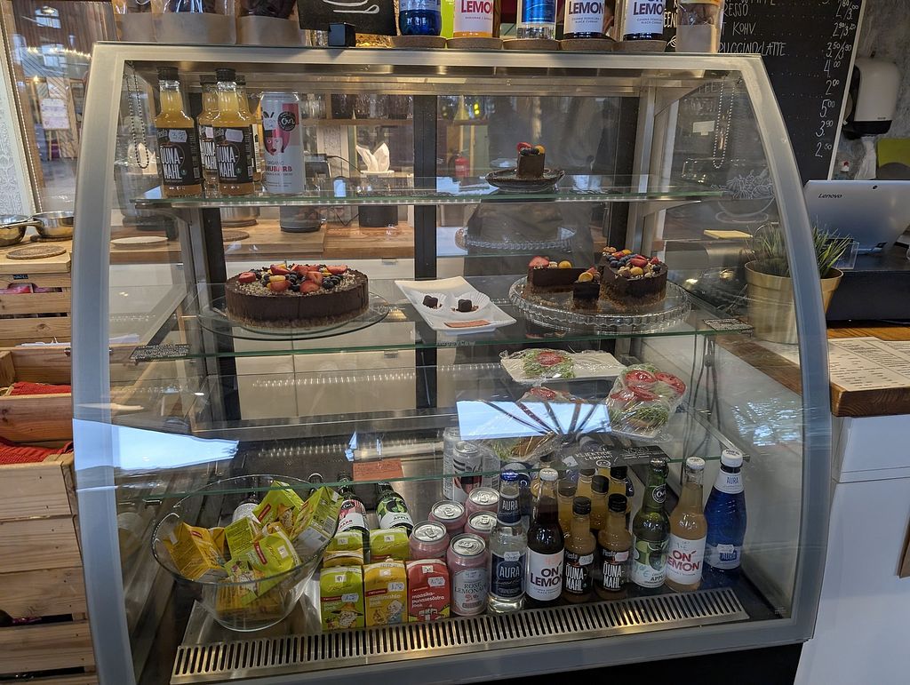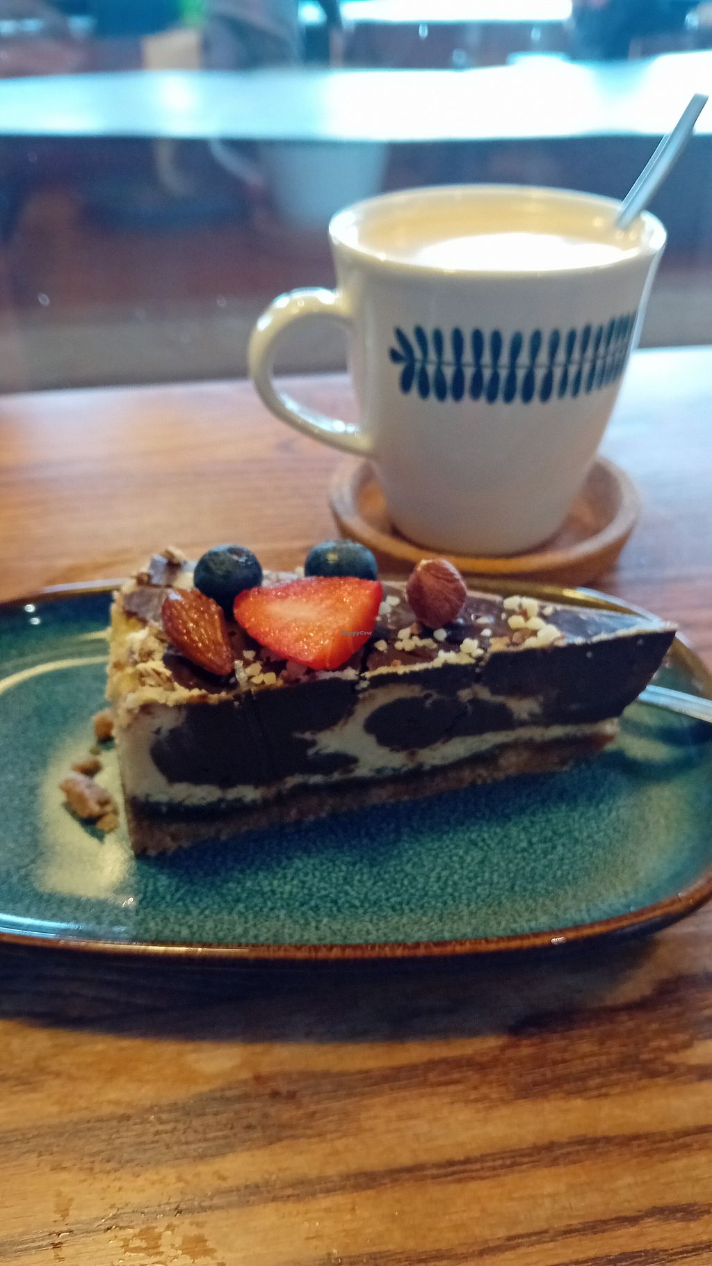 All vegan, great coffee, very nice cakes. Inside a covered market place, great spot!