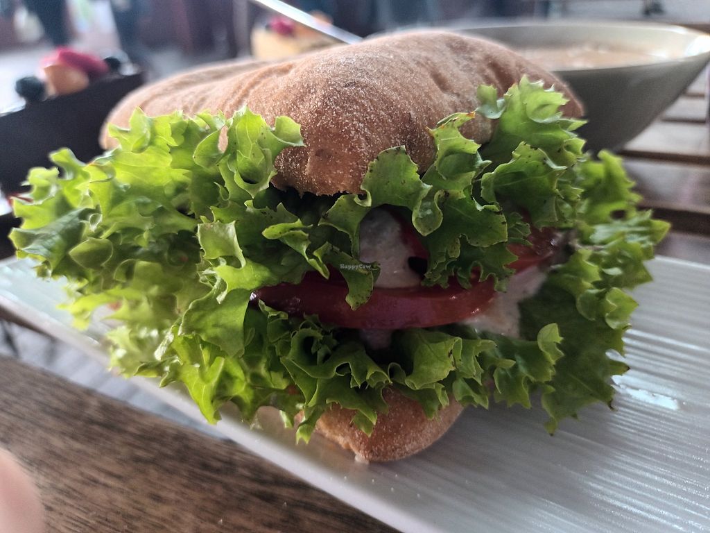 We ordered a double sandwich, lentil soup and two cakes. The sandwich was pretty much tomatoes and lettuce, we'd prefer to have more protein there, for example tofu. The soup was great, could come back for it. The cakes were nice but a bit too sweet to my taste and very filling.