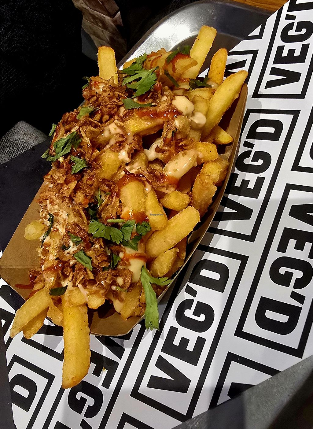 The spicy crispy chick’n was delicious, really saucey and great flavours. But the fries were phenomenal. Crispy, well seasoned and so addictive! Friendly staff too.
